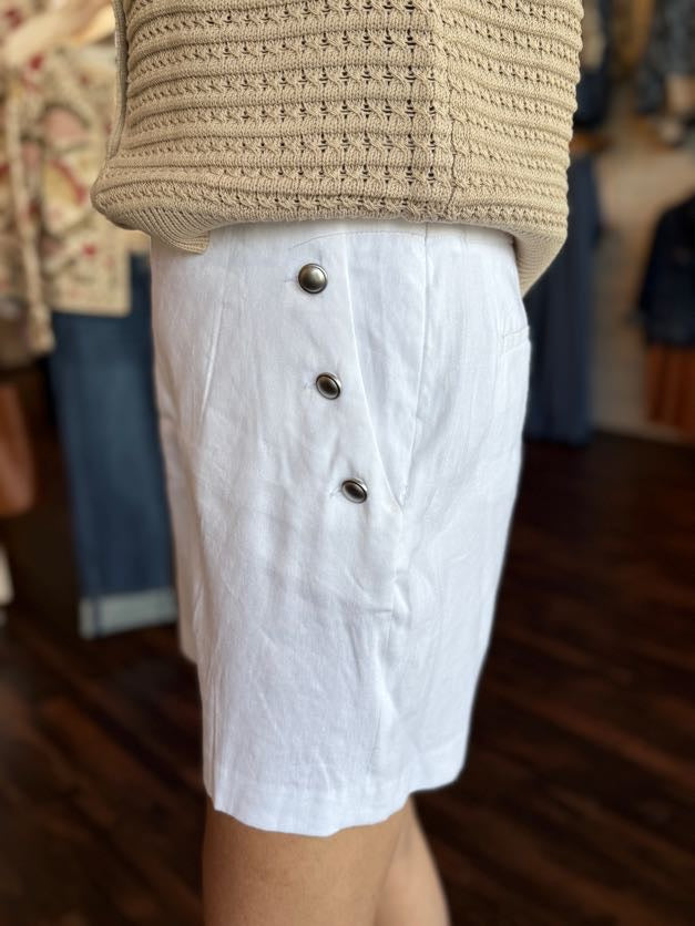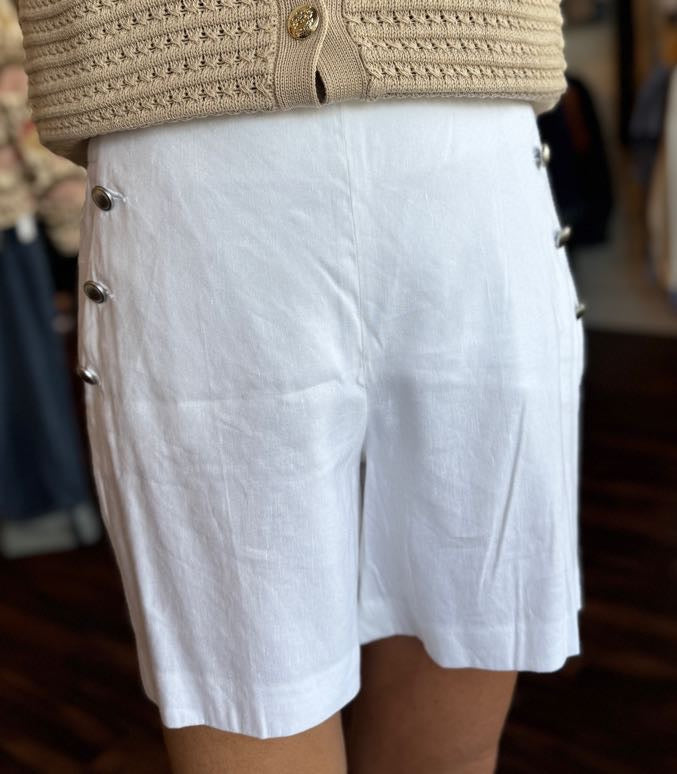 Step into summer fun with these Solid Linen Stretch Shorts featuring charming button details. Crafted with breathable linen and a touch of stretch, they offer comfort and a playful fit perfect for warm days. The stylish buttons add a flirty twist, making these shorts a go-to for sunny adventures and casual outings.