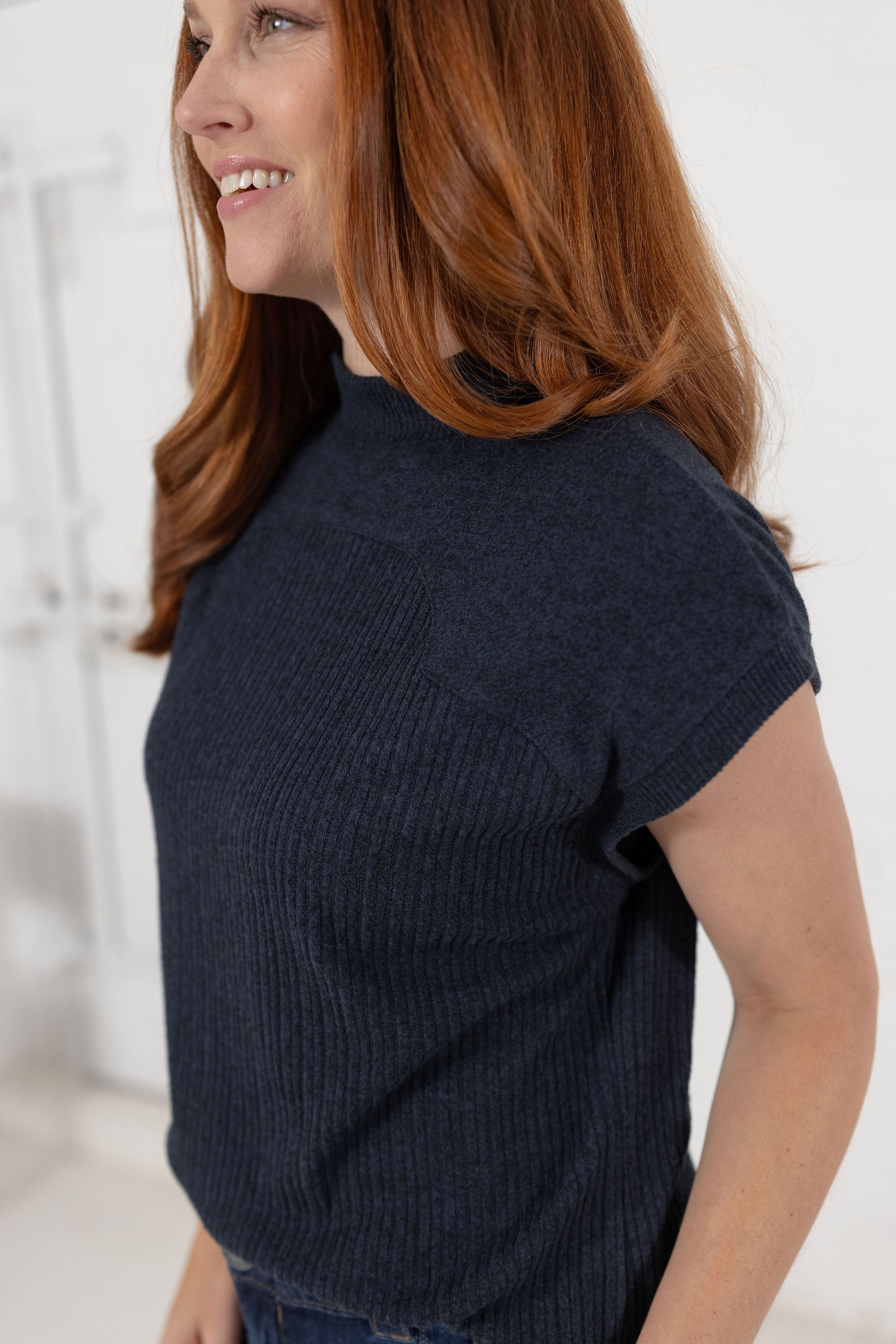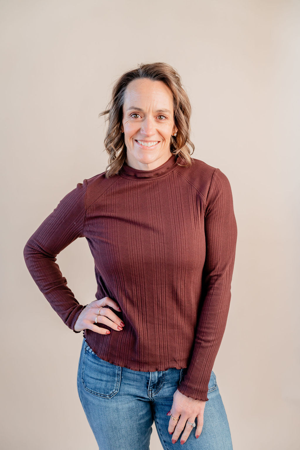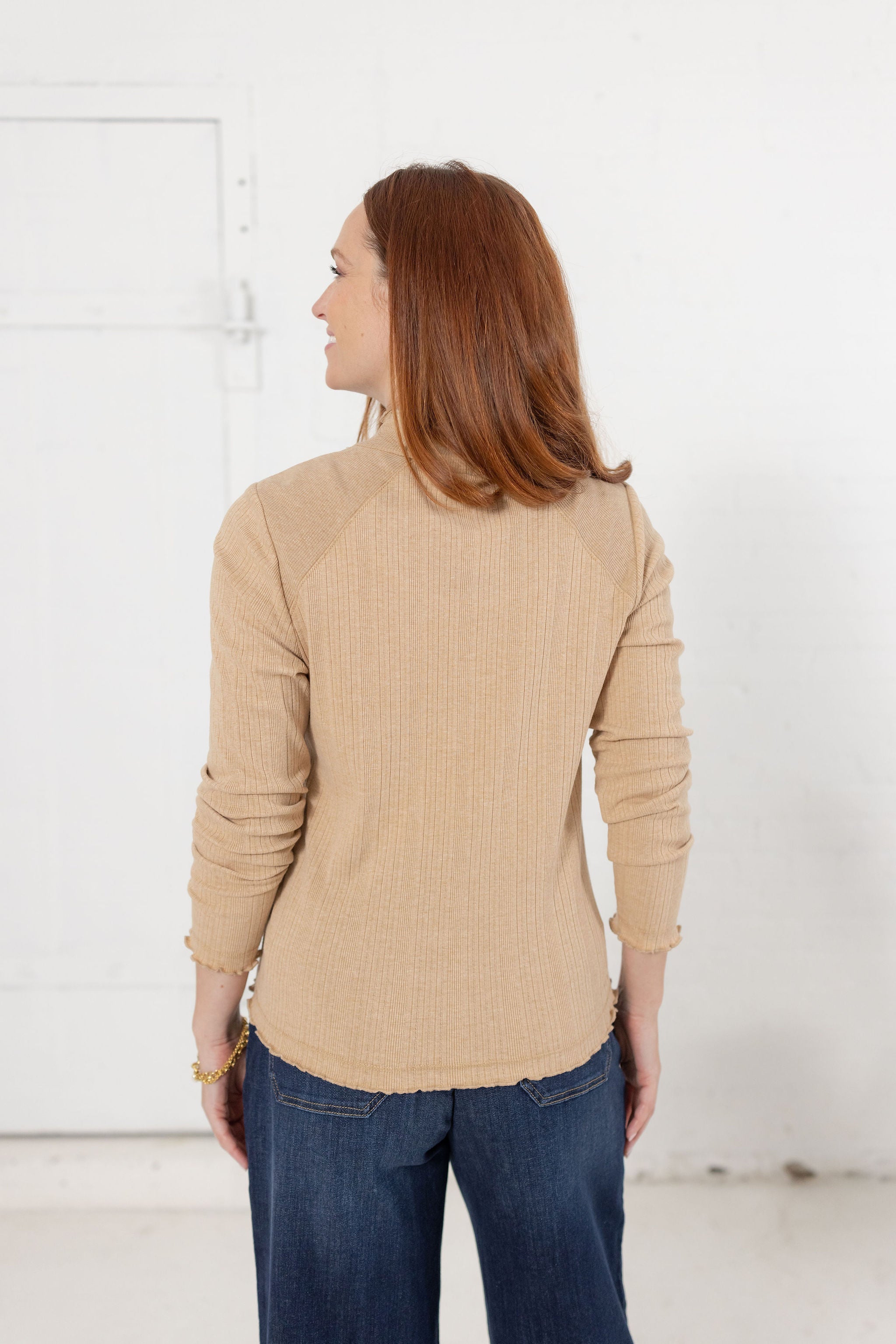 Fitted Mock Neck Top W/ Lettuce Edge Detail