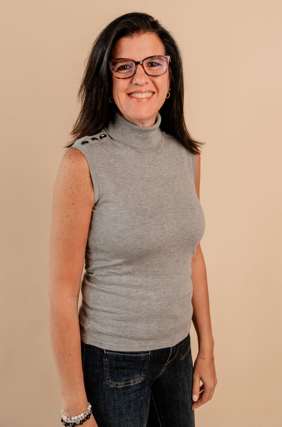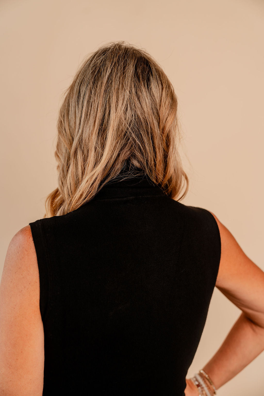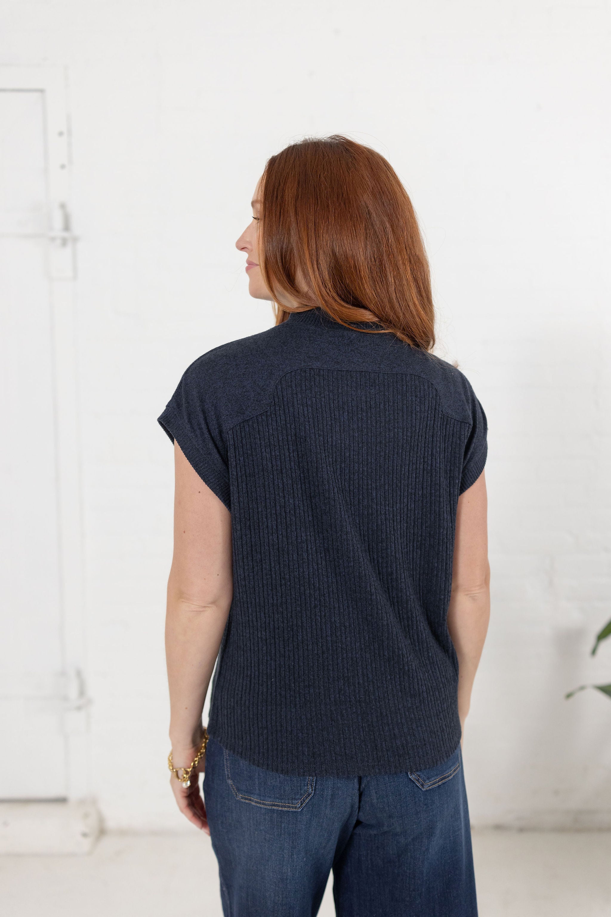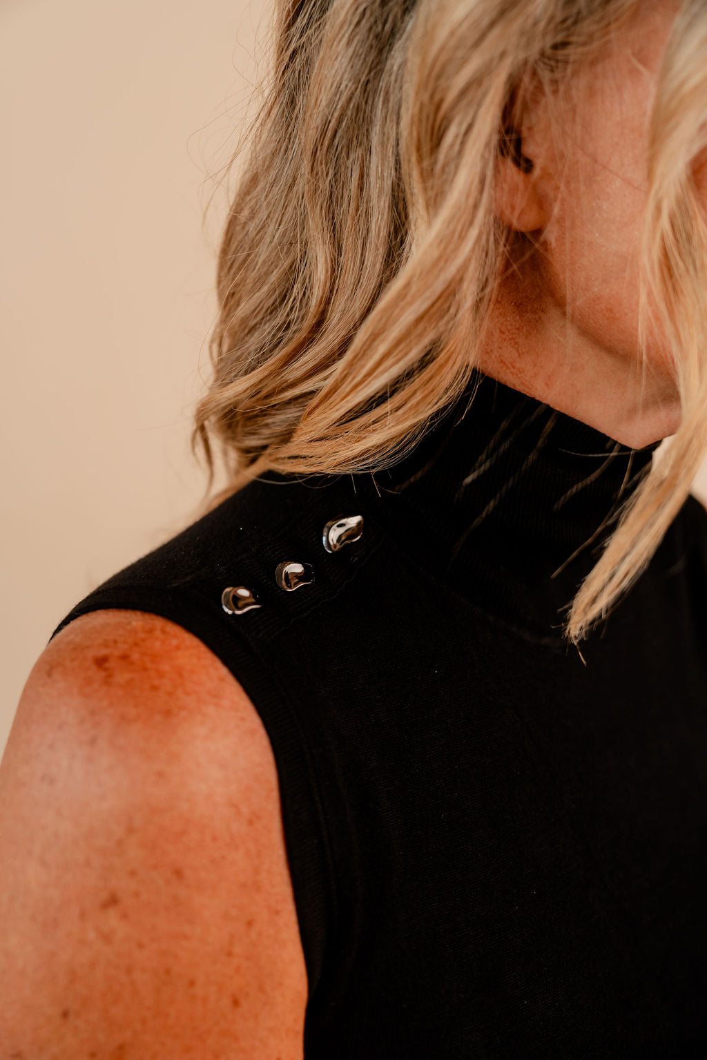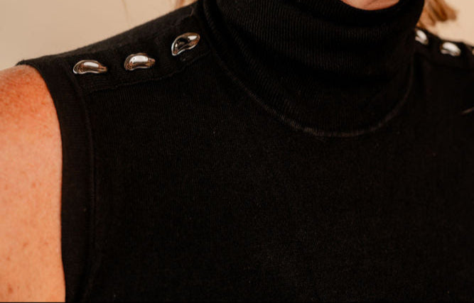 Sweater Sleeveless Shoulder Stone Basic Knit