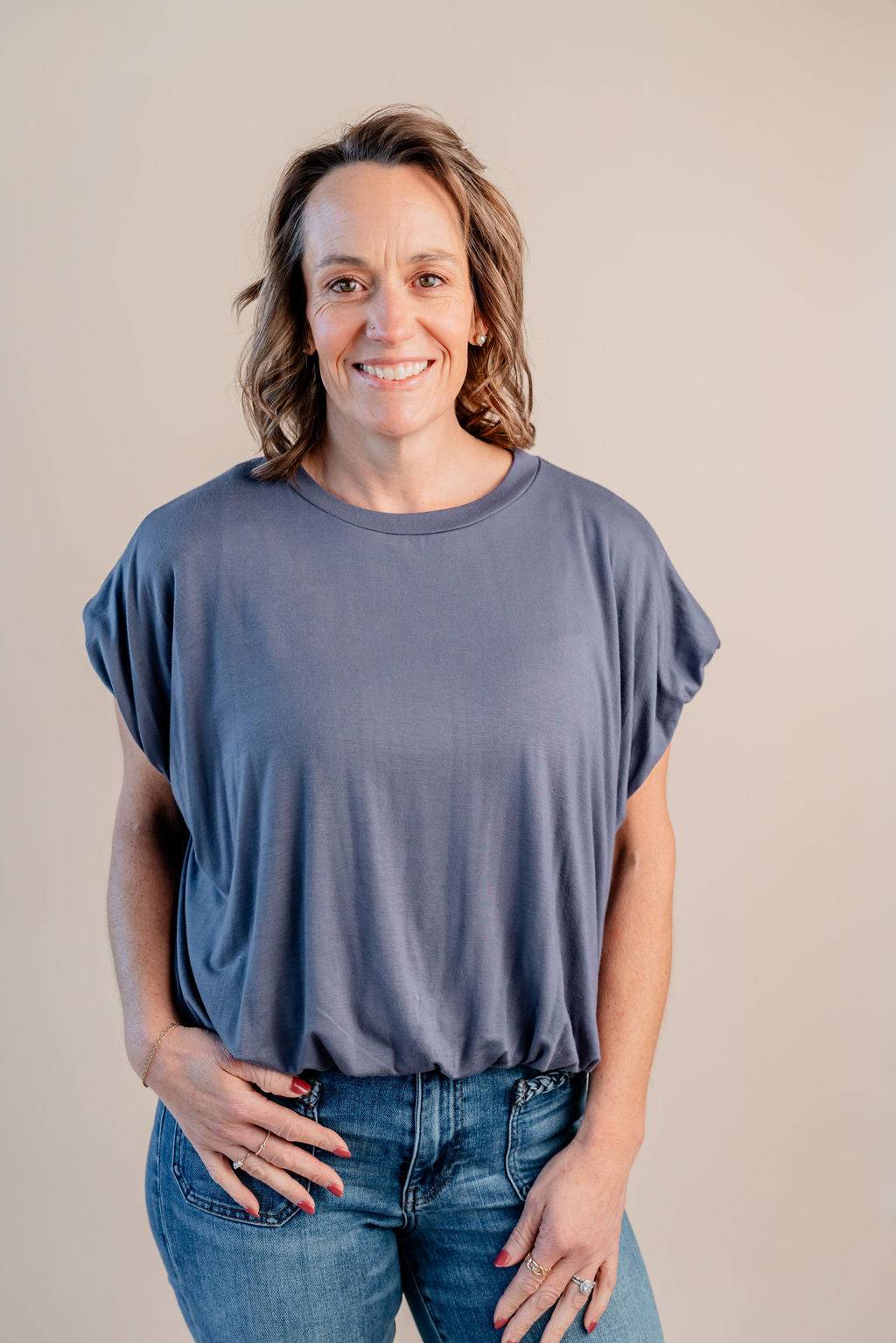 Taylor Bubble Hem Short Sleeve Top