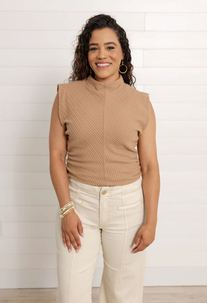 Mac and Me Funnel Neck Side Ruched Top