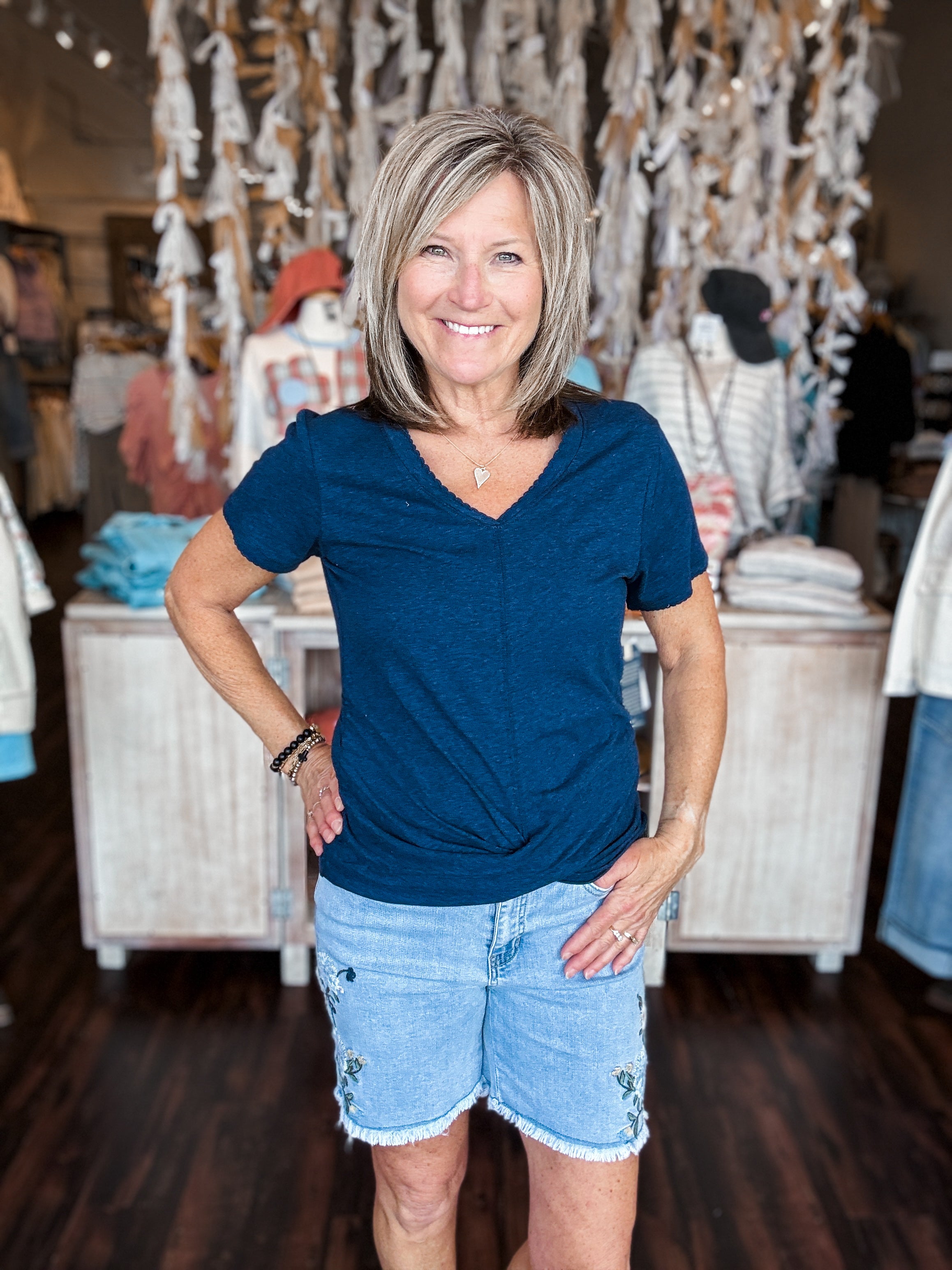 These stretchy denim shorts are your new summer essential. Featuring eye-catching side embroidery that adds personality to a classic silhouette, they're crafted from comfortable stretch fabric that moves with you. Perfect for casual outings, weekend adventures, or laid-back days when you want to look effortlessly put-together. The flattering fit and quality construction make them a versatile wardrobe staple you'll reach for again and again.