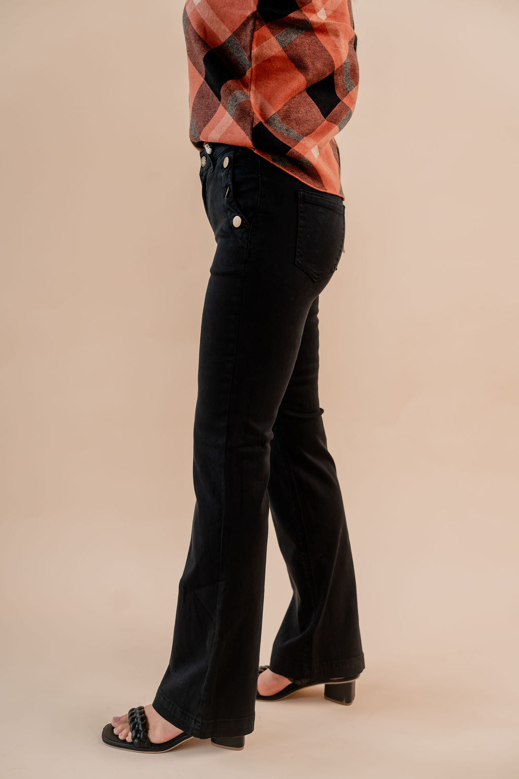 Flare Leg Twill Pant Buttons At Side Pockets