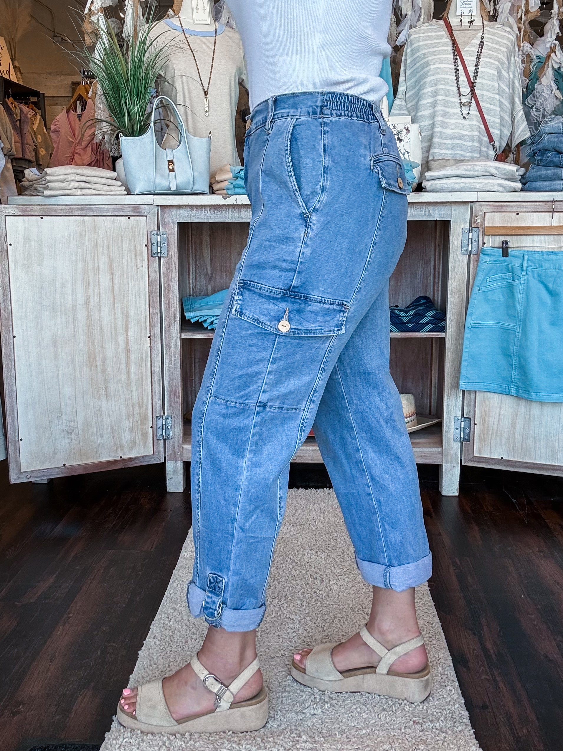 Stretch Tencel Cargo Pants With Adjustable Hem