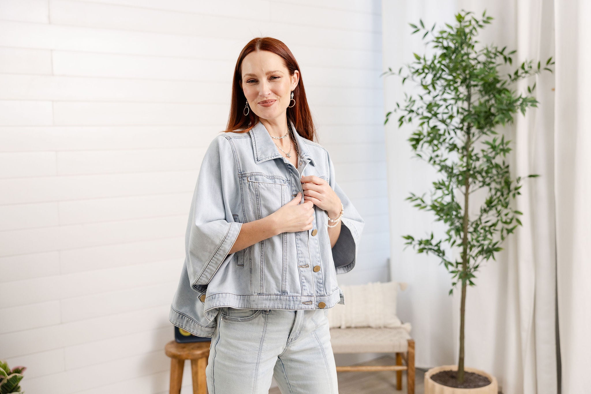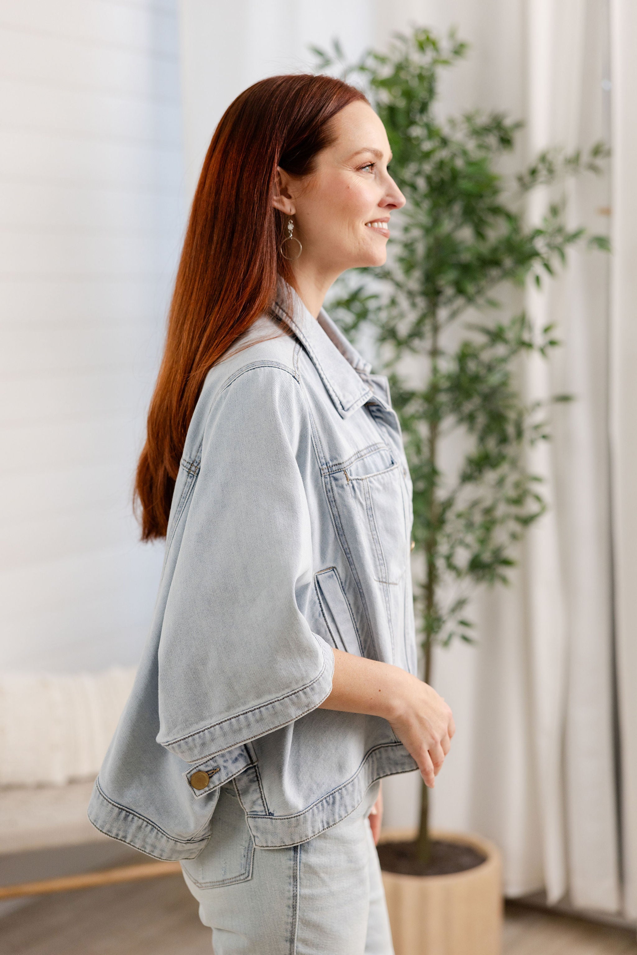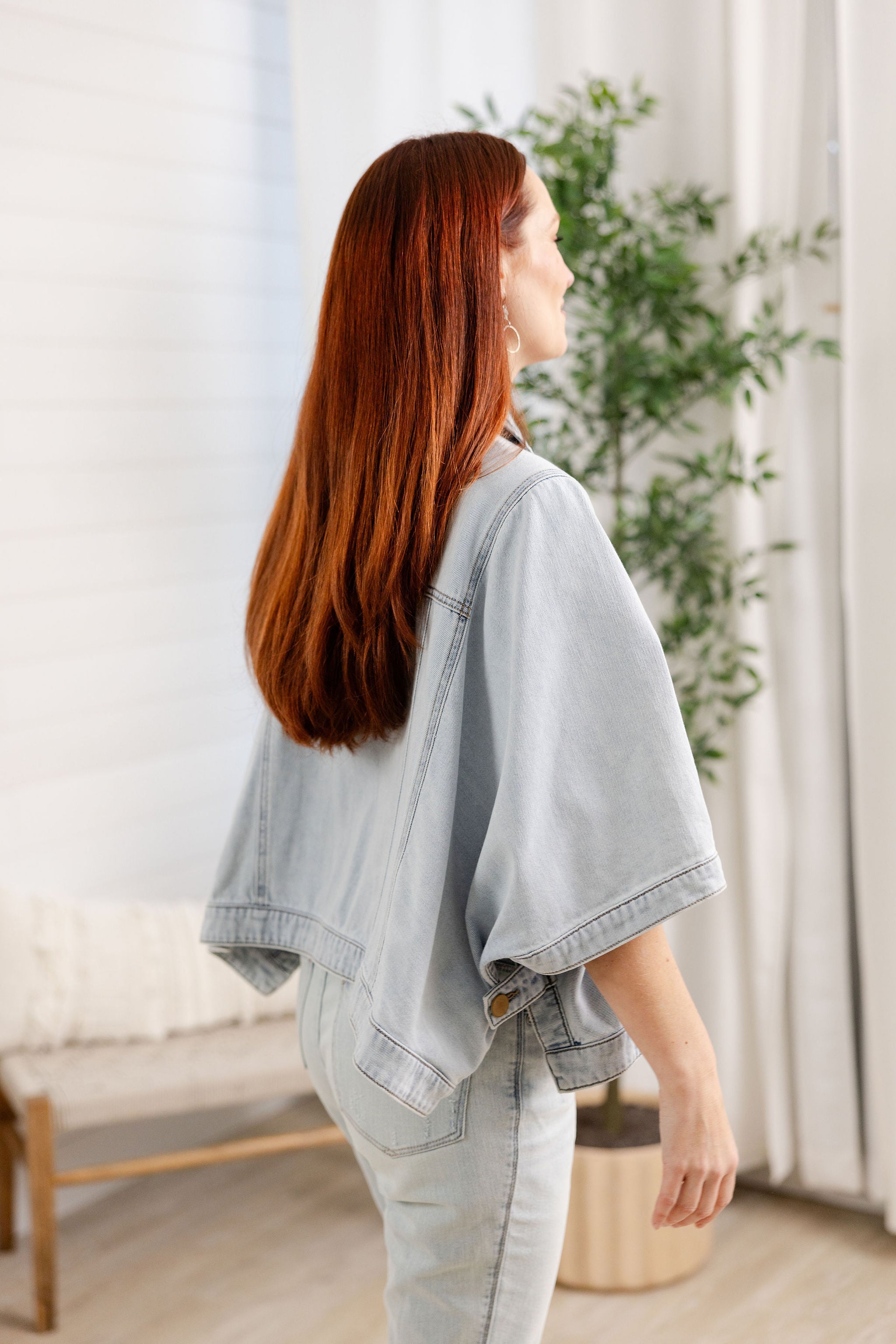 Button Down Collared Jean Jacket Capelet