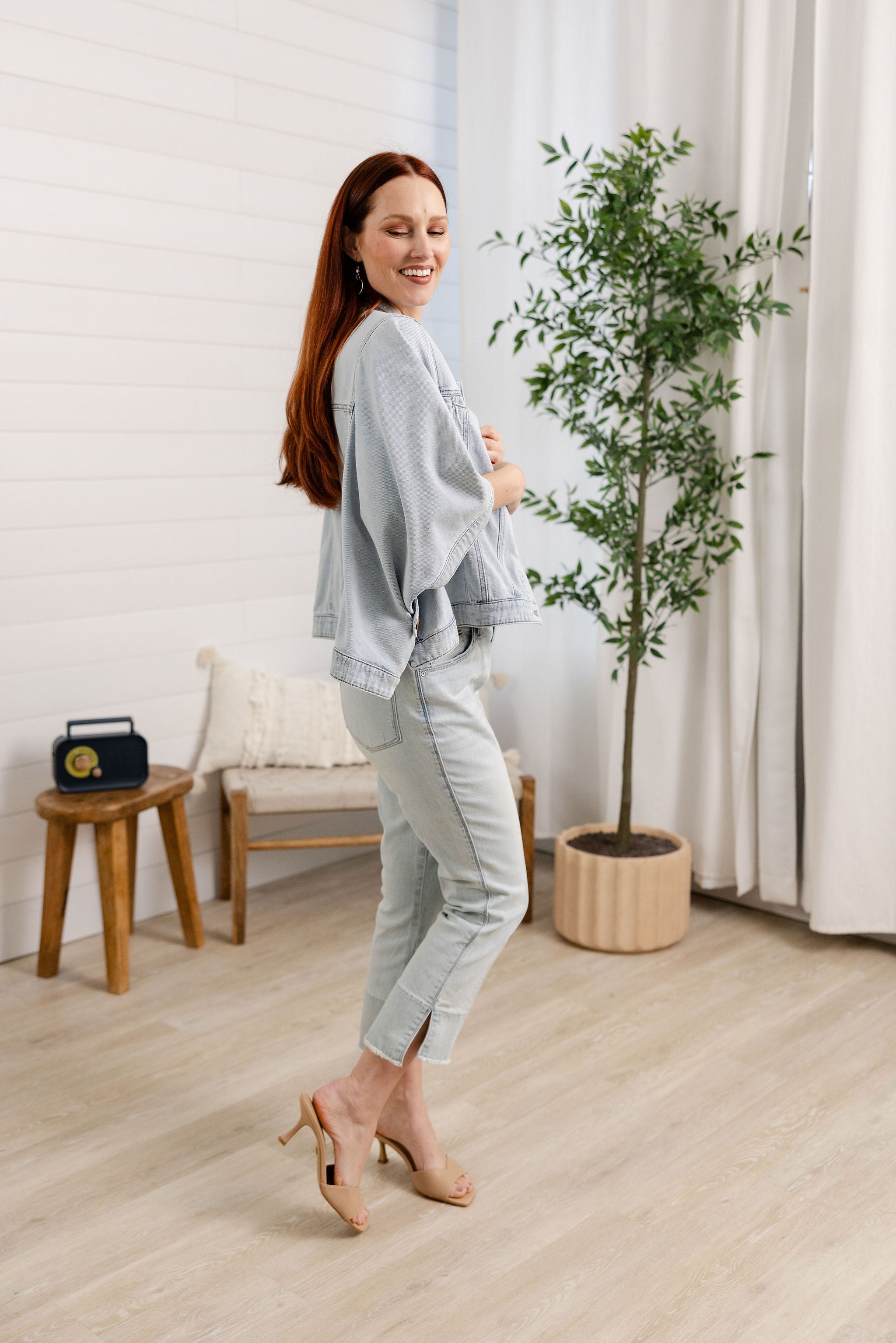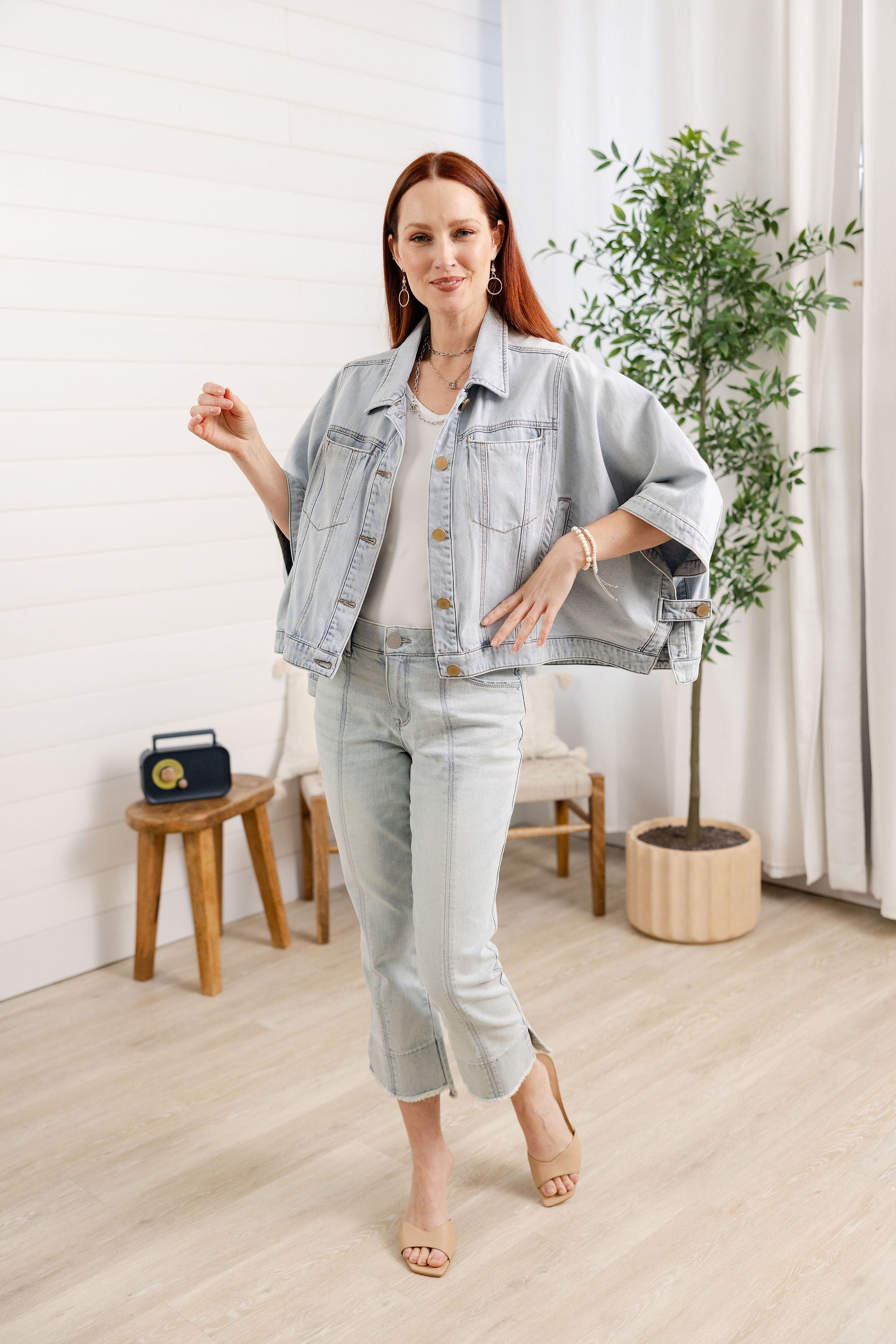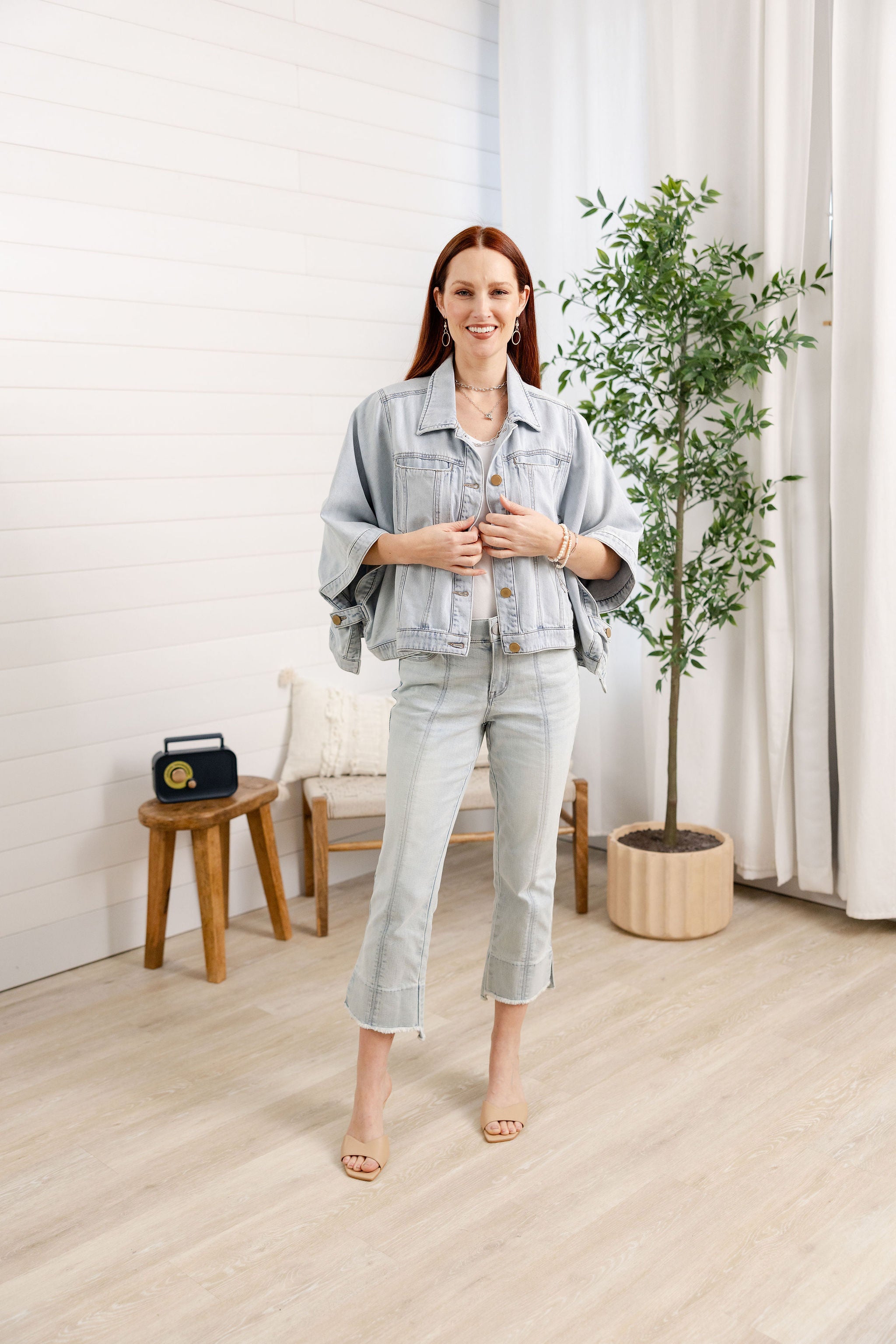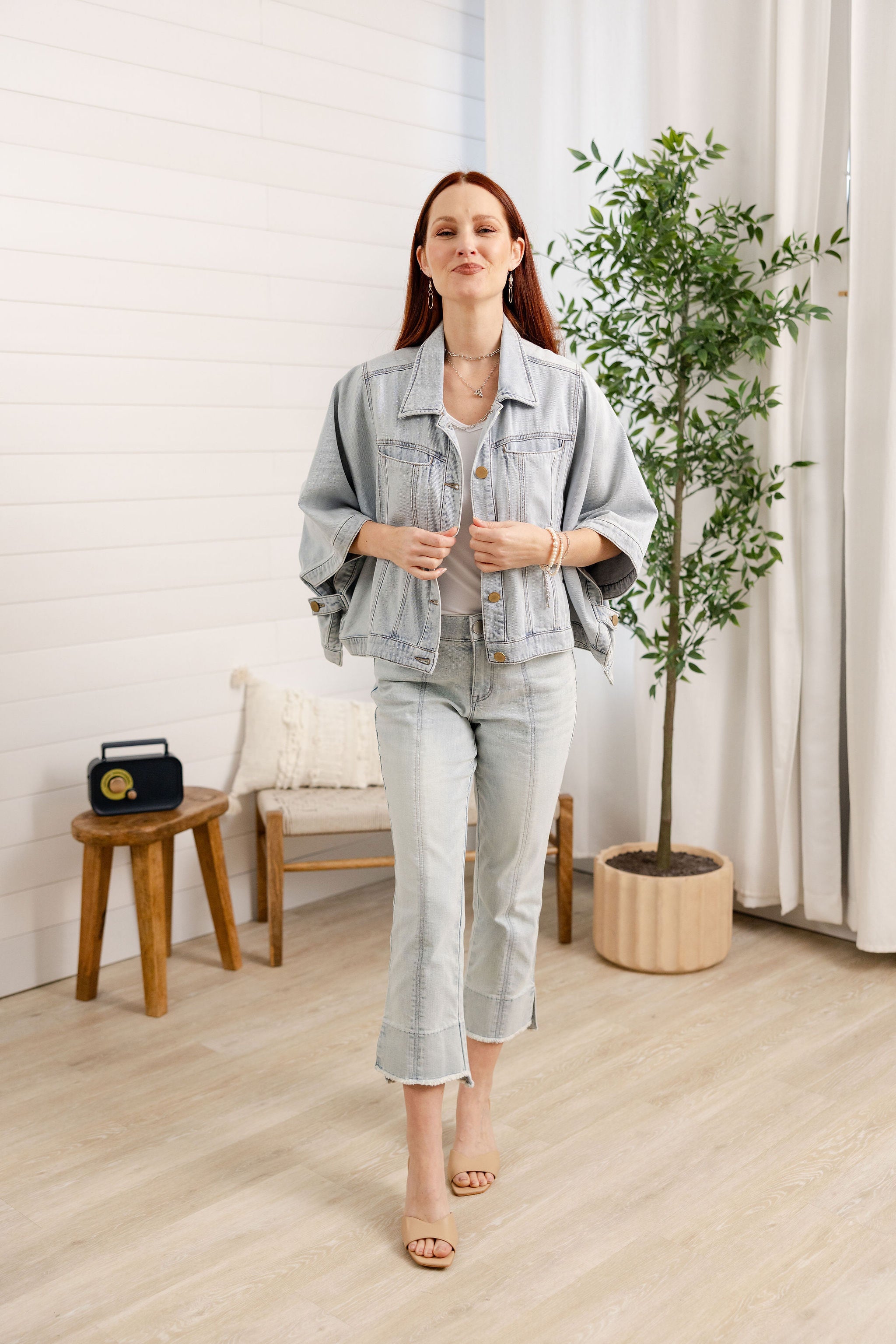 Button Down Collared Jean Jacket Capelet
