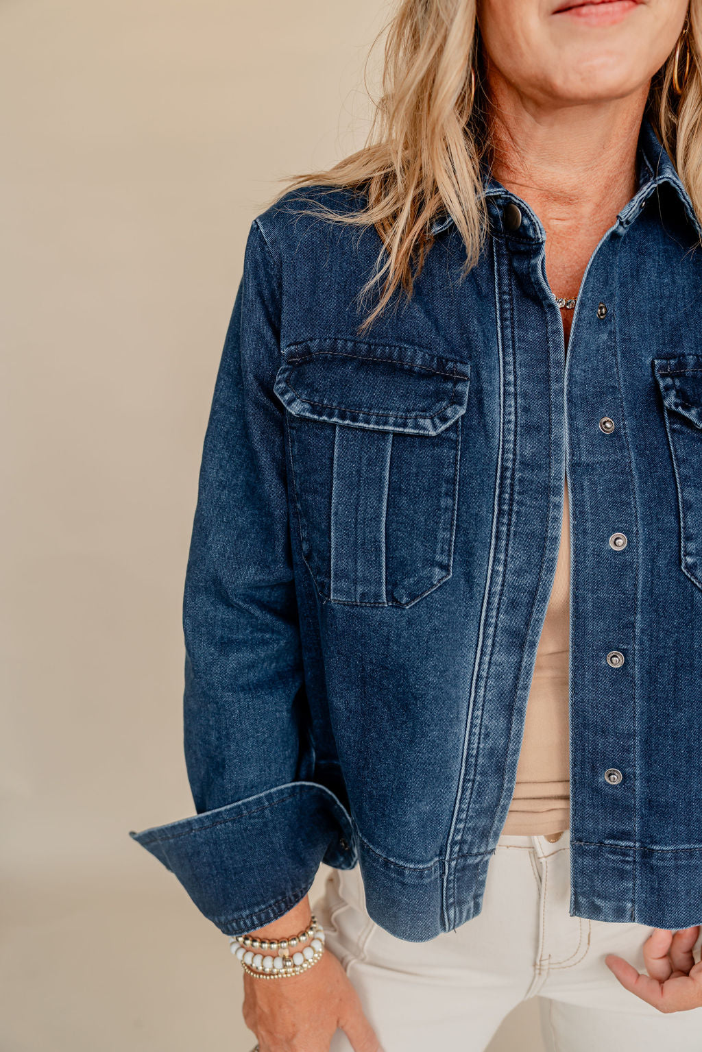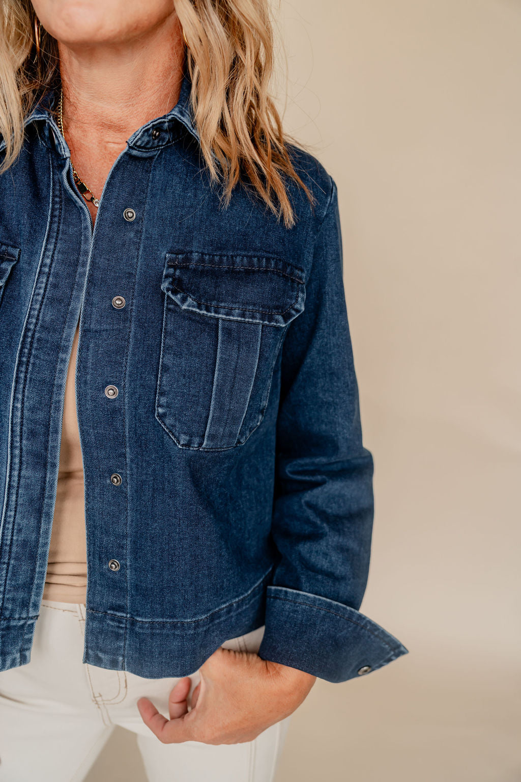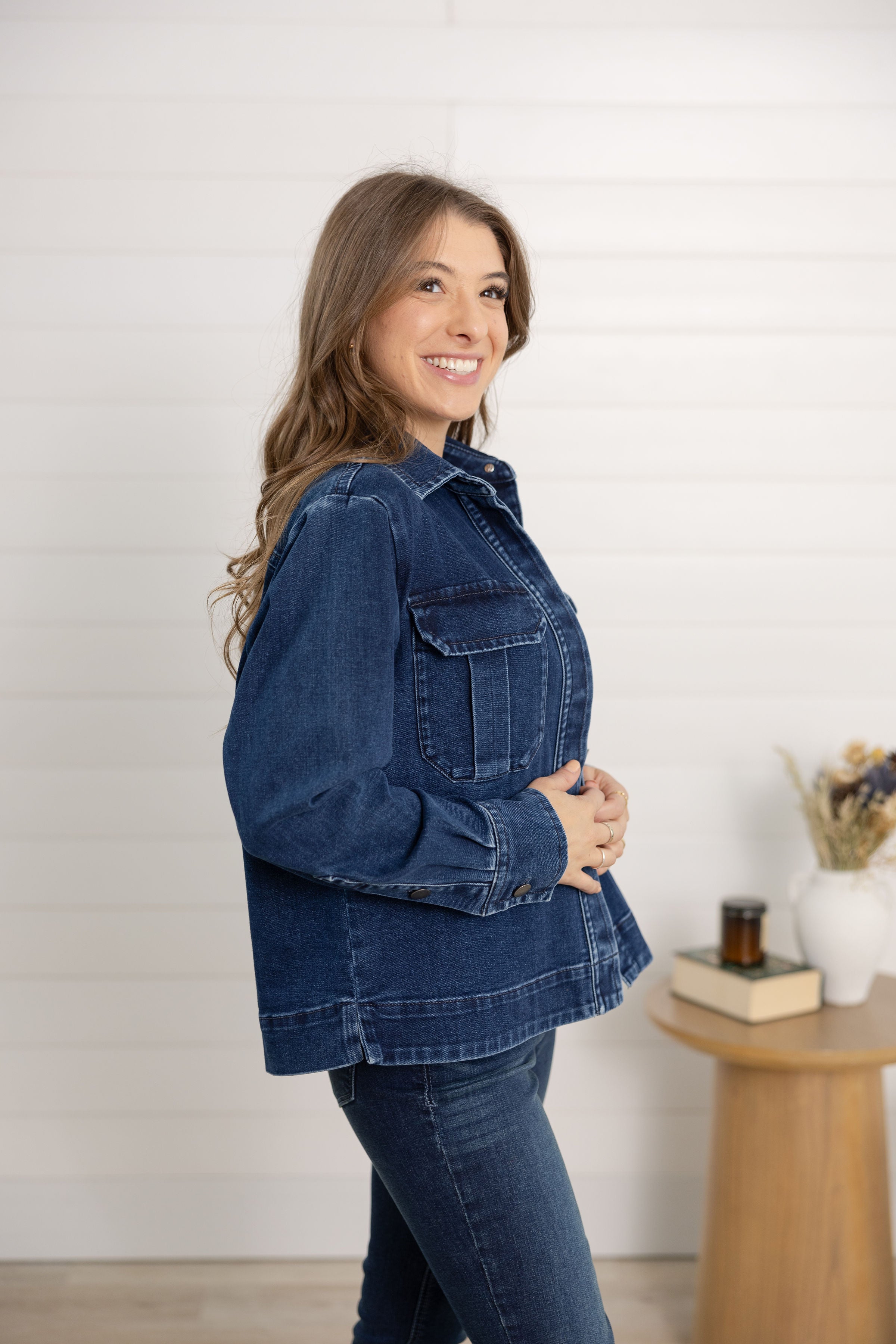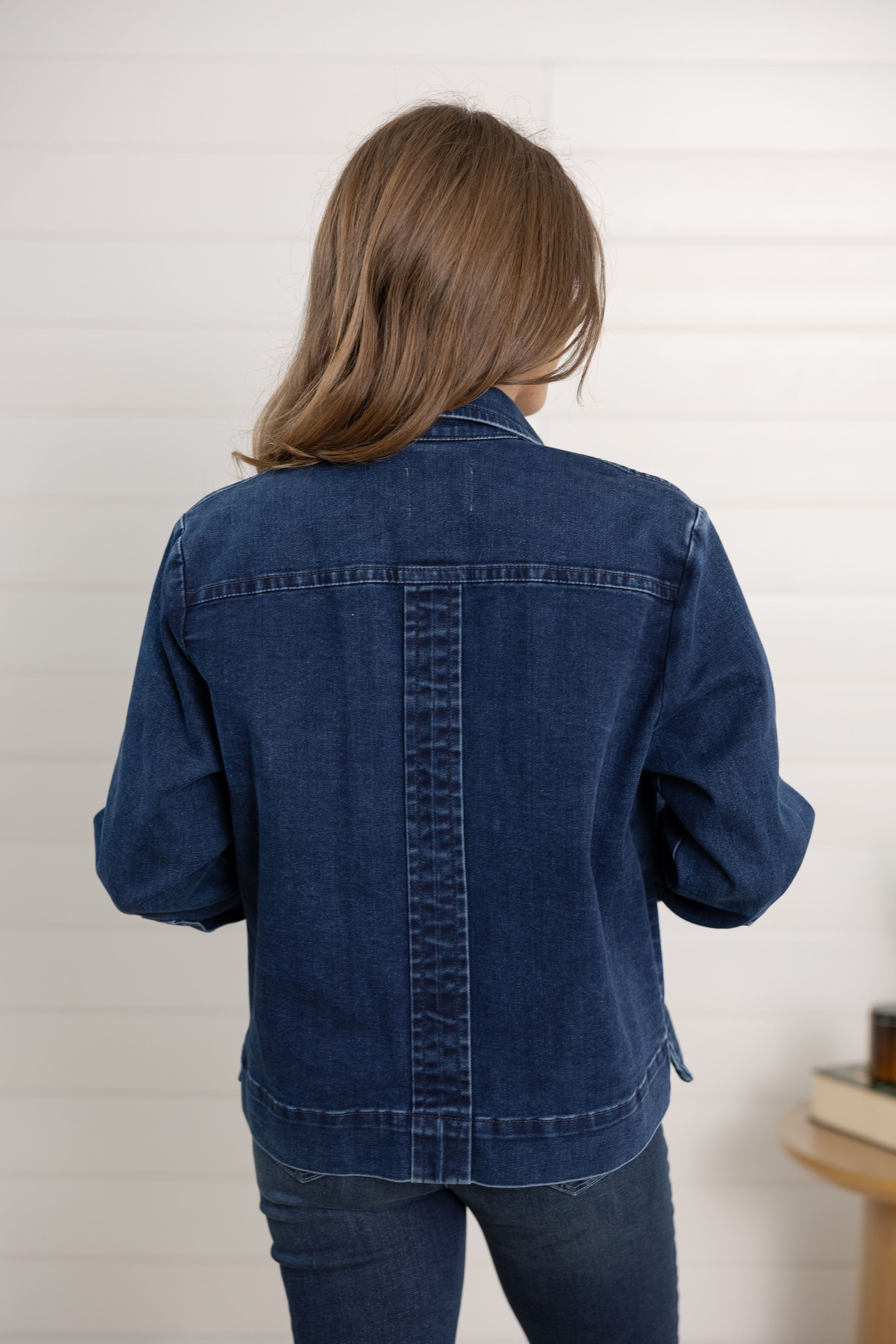Add a splash of cool to your wardrobe with this Dark Denim Jacket featuring a handy patch pocket. Perfect for layering, it brings a playful edge to any outfit while keeping your essentials close. Whether you're out for a stroll or meeting friends, this jacket’s classic style and fun details make every day a little more adventurous.