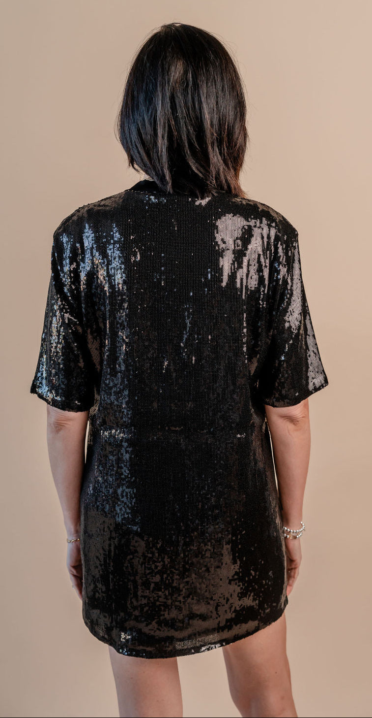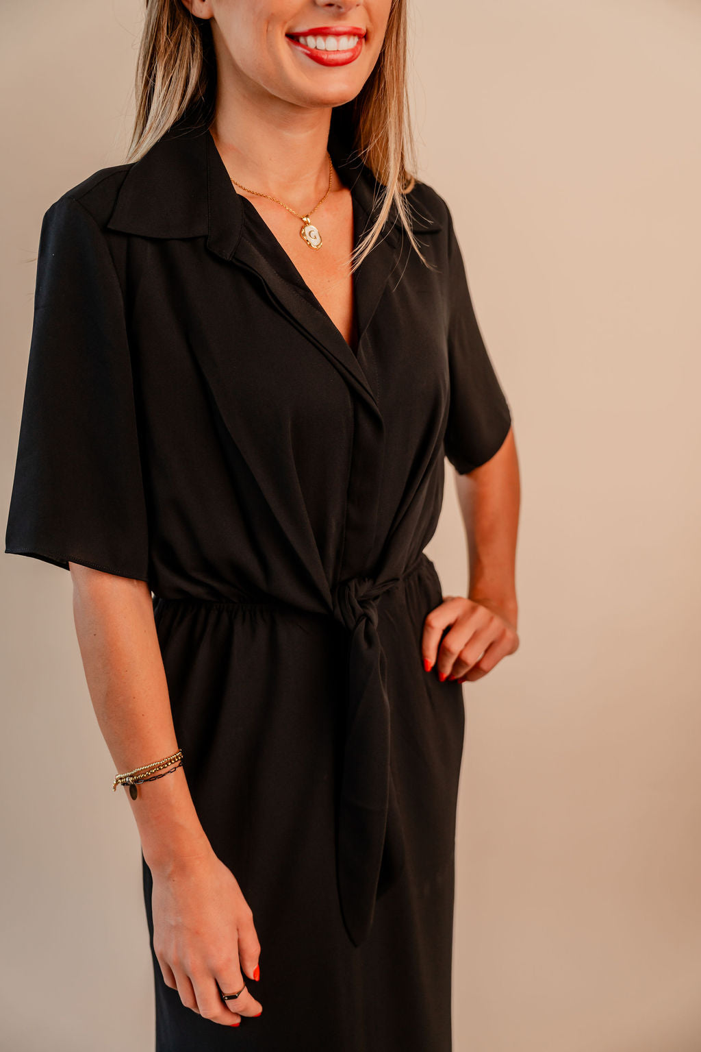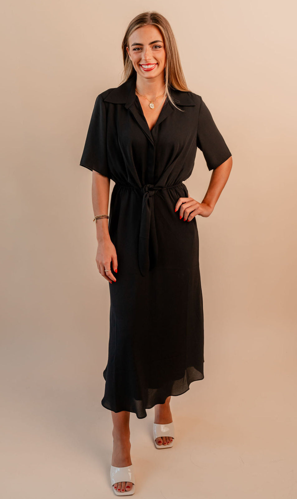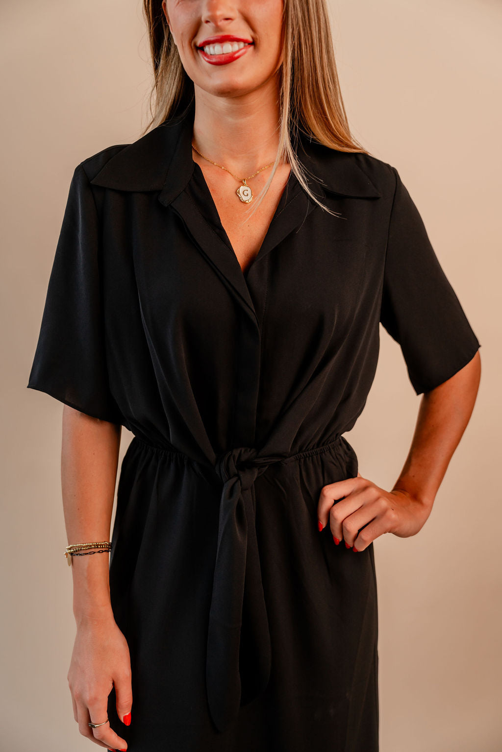 SHORT SCALLOP SLEEVE FRONT BOW SCALLOP HEM MINI DRESS WITH POCKETS