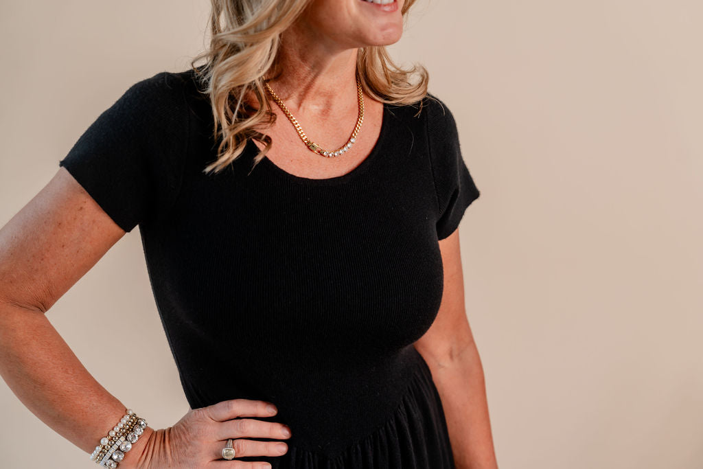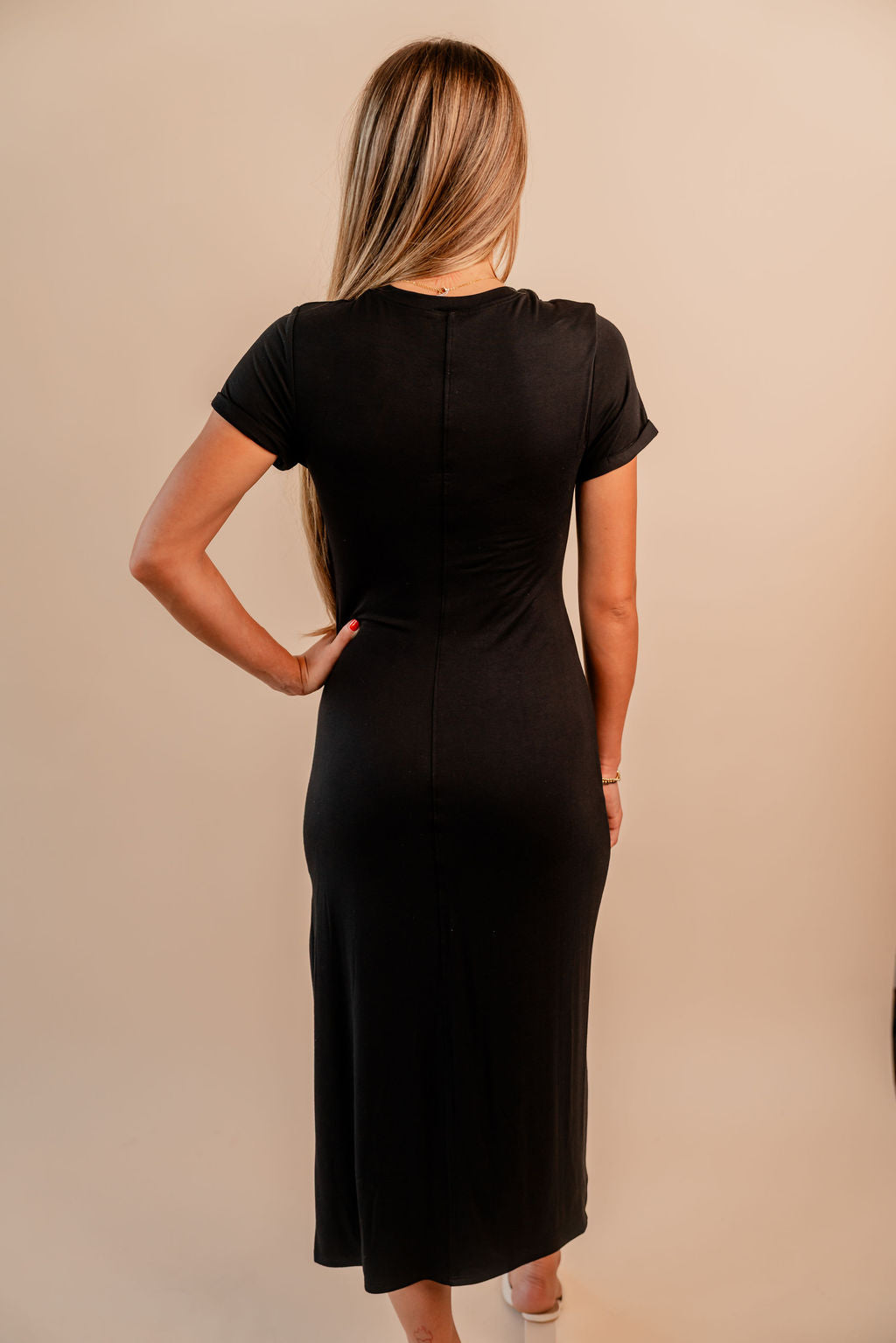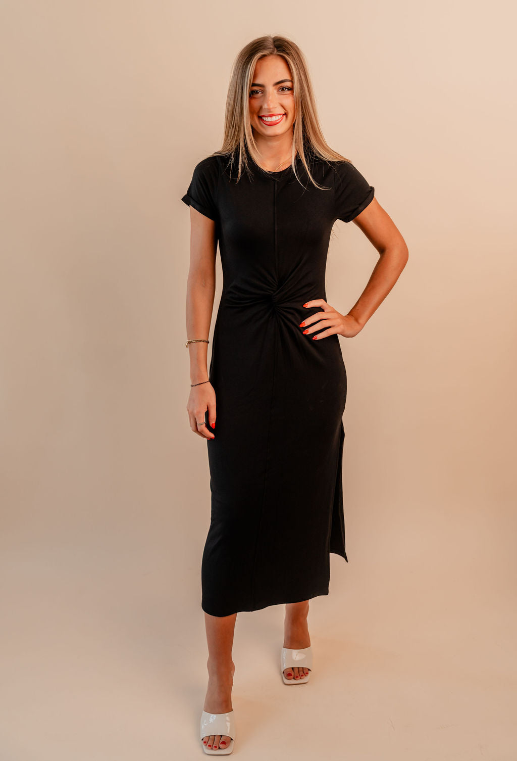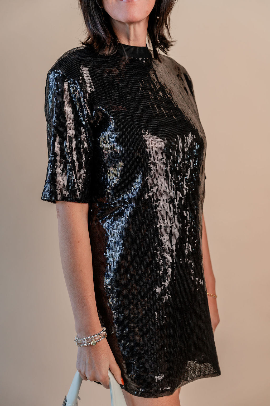 SHORT SCALLOP SLEEVE FRONT BOW SCALLOP HEM MINI DRESS WITH POCKETS