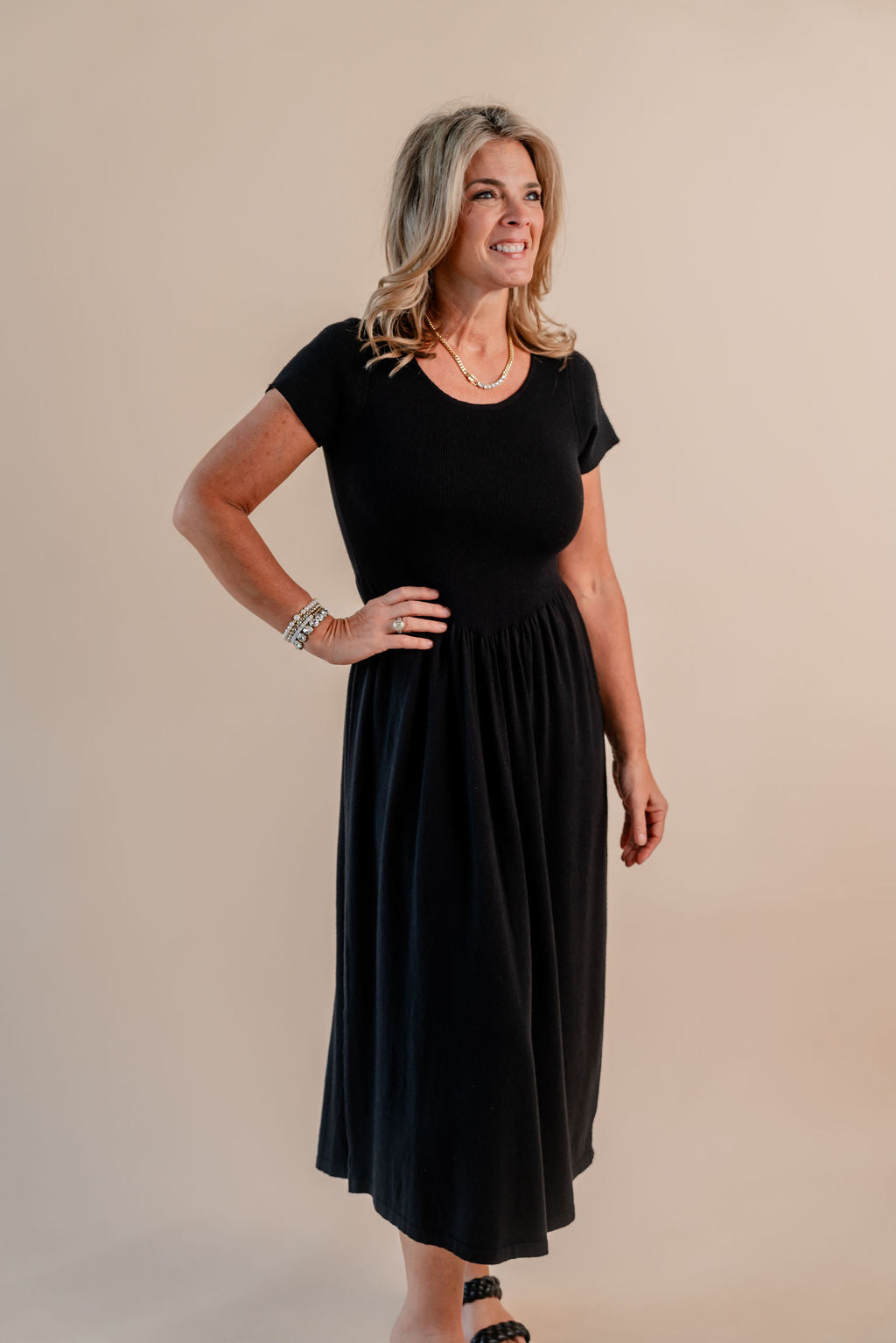 This Short Sleeve Knit Dress combines comfort and style effortlessly. Its soft, breathable fabric keeps you cozy all day, while the playful silhouette adds a fun touch to any outing. Perfect for casual days or dressy occasions, it’s your new go-to for easy, breezy fashion.