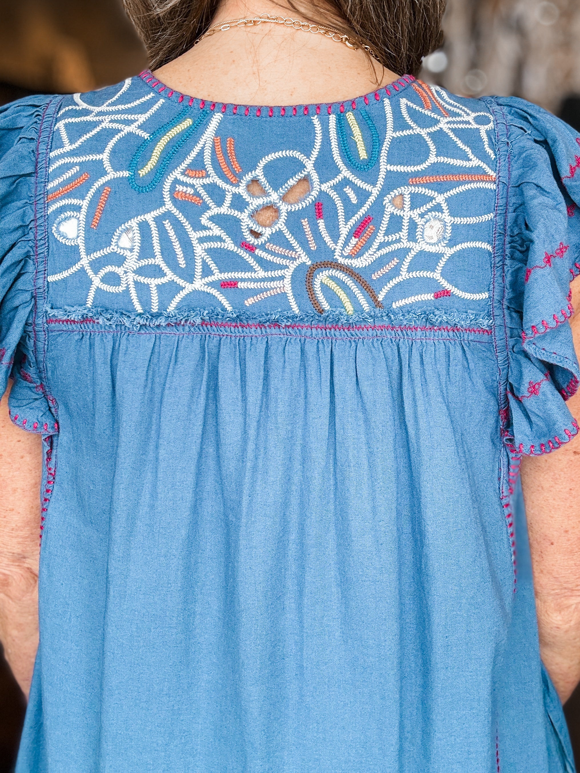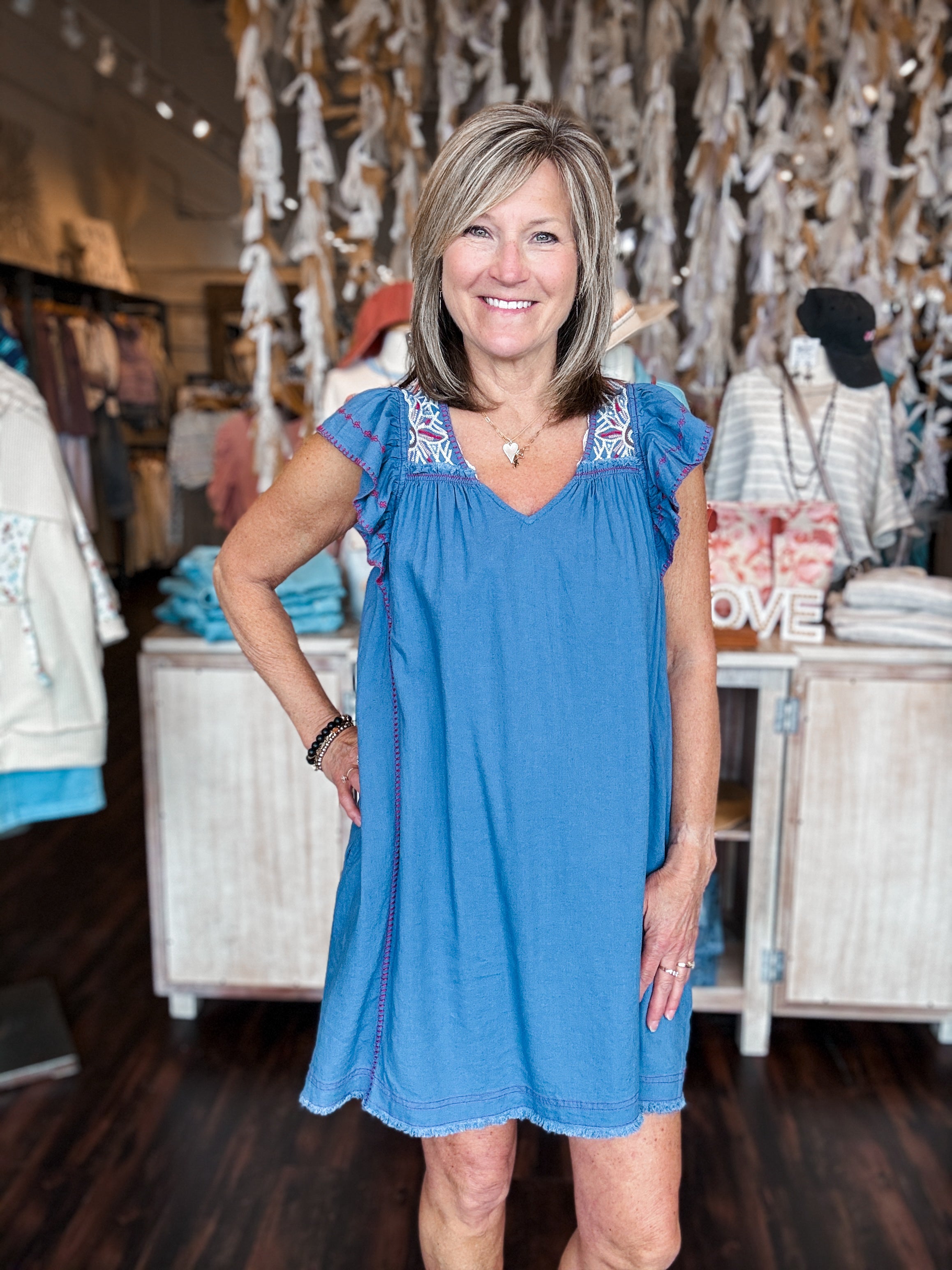 Effortless elegance meets fun with this flutter sleeve v-neck woven dress. The delicate flutter sleeves add a touch of whimsy while the flattering v-neckline keeps things chic and timeless. Crafted from quality woven fabric, it's the perfect piece for everything from weekend brunch to date night. Pair it with sneakers for casual vibes or dress it up with heels—this versatile dress does it all.