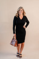 Slip into effortless charm with this Ribbed V-neck Long Sleeve Dress. The flattering V-neckline and cozy ribbed fabric create a perfect balance of comfort and style, while the long sleeves add a touch of elegance. Ideal for twirling through your day or layering up for cooler nights, this dress brings playful sophistication to your wardrobe.