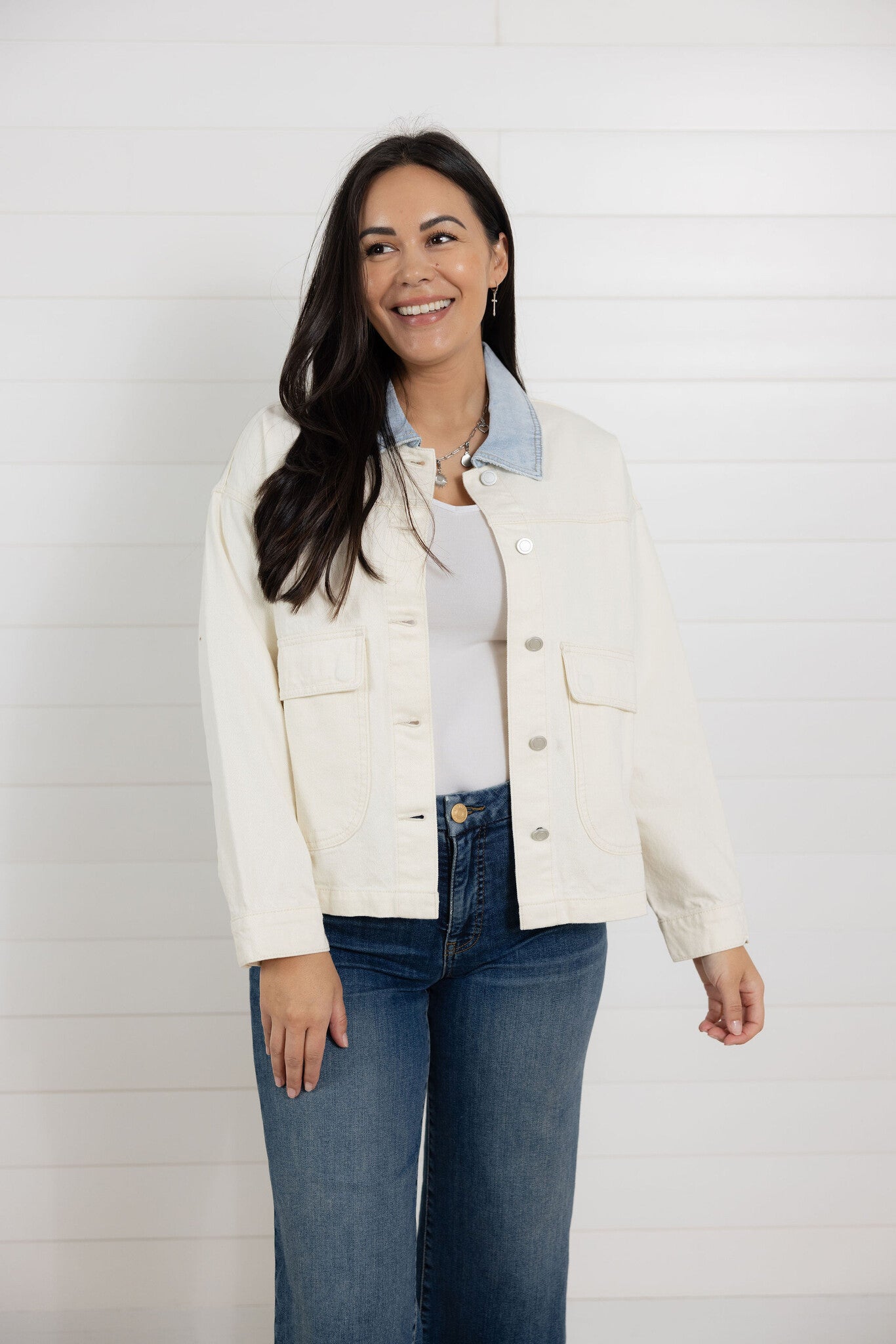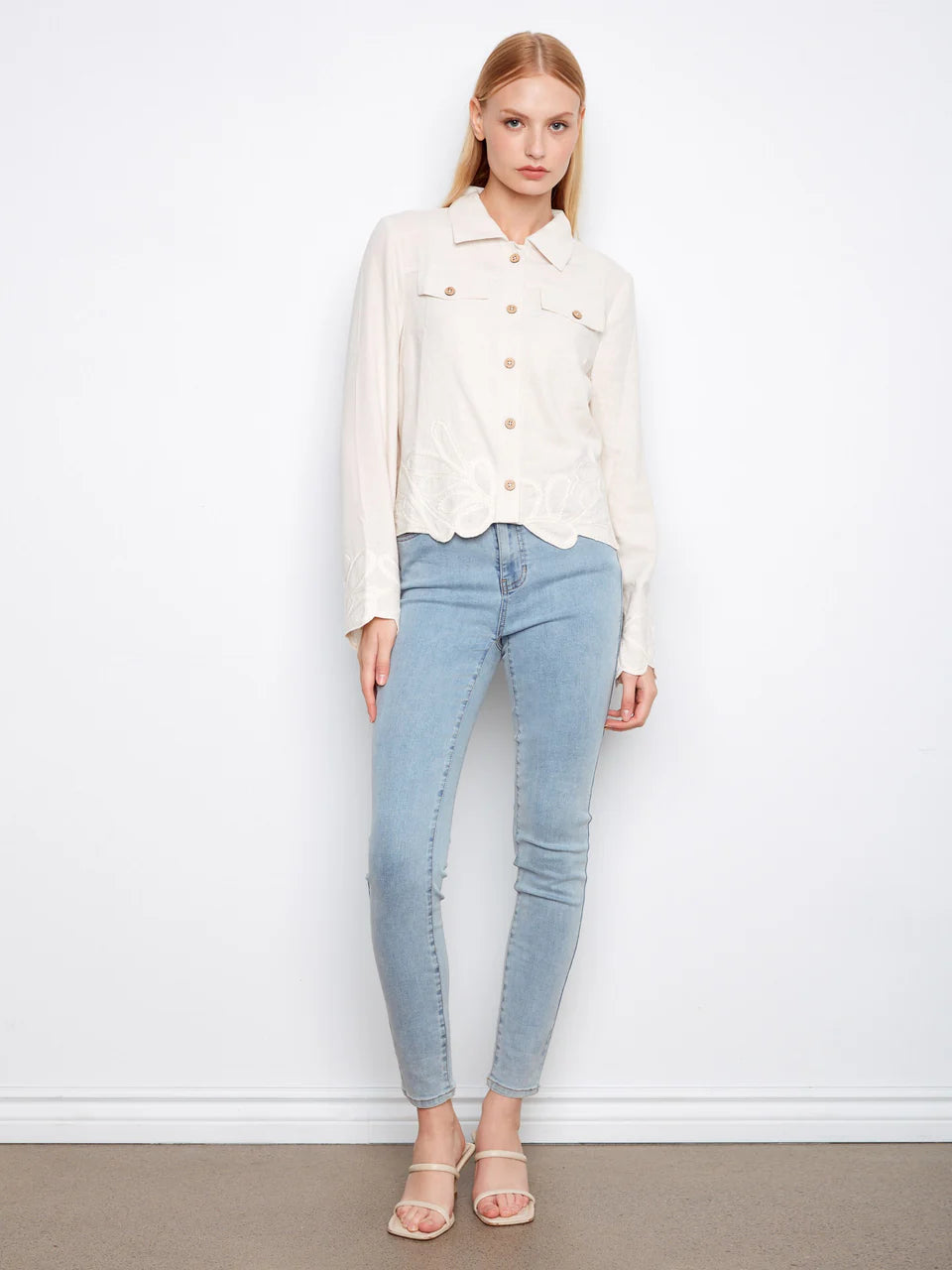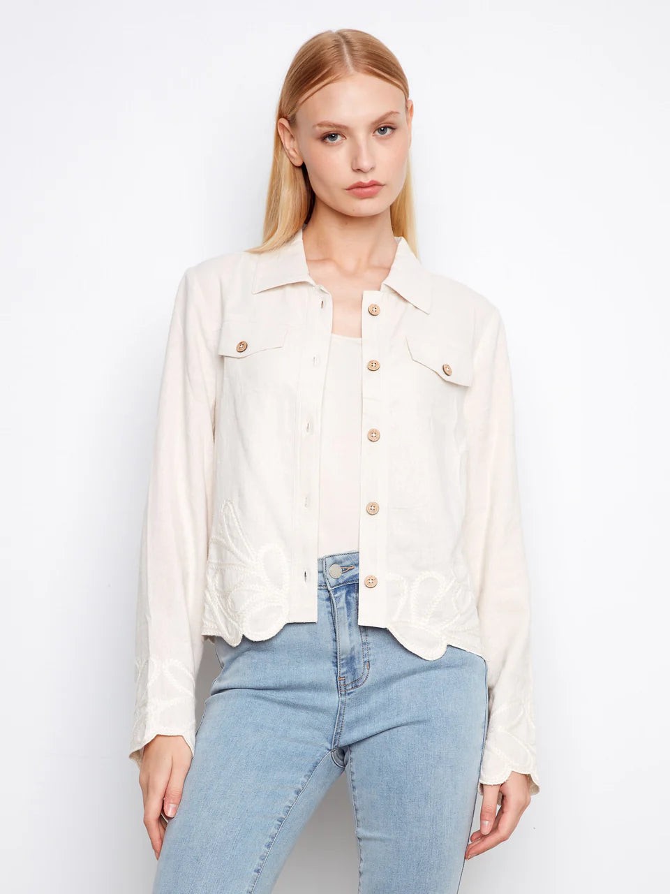 Long Sleeve Hidden Snap Jacket With Embroidery