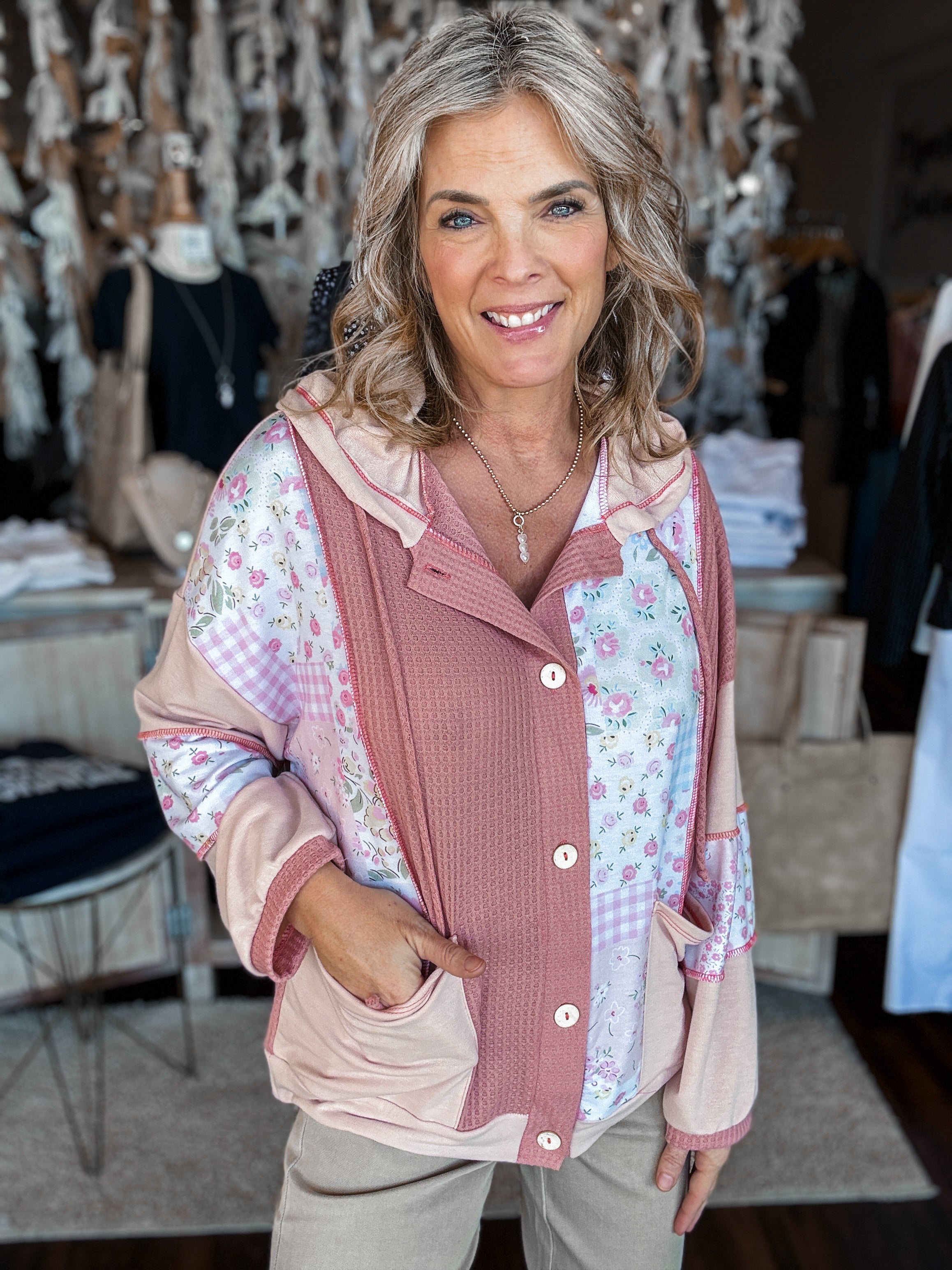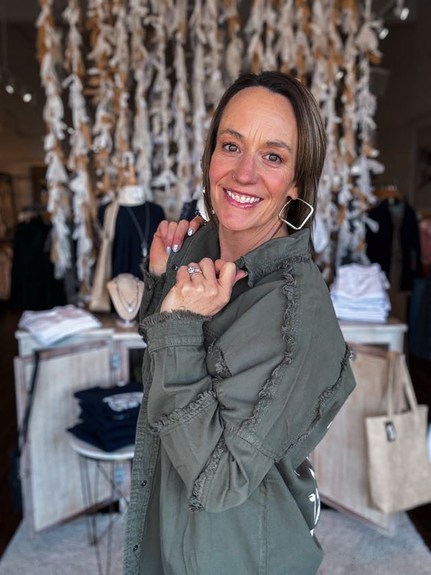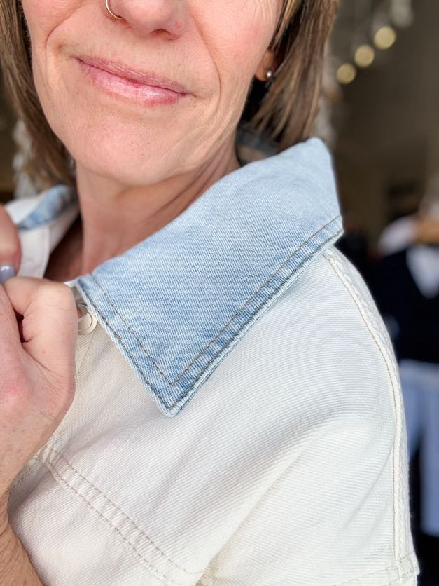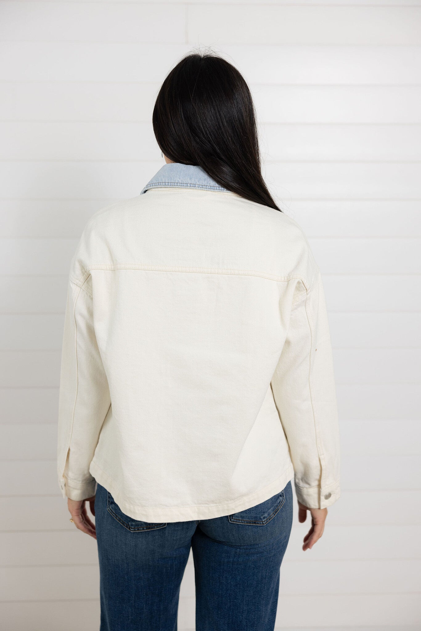 Long Sleeve Hidden Snap Jacket With Embroidery