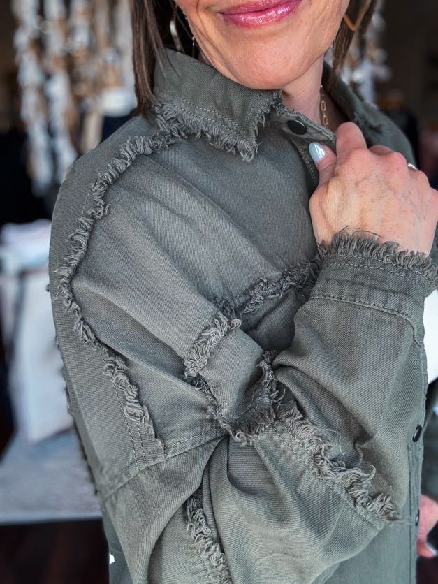 Mac & Me Ruched 3/4 Sleeve Jacket With Frayed Hem