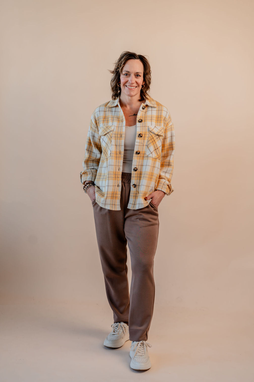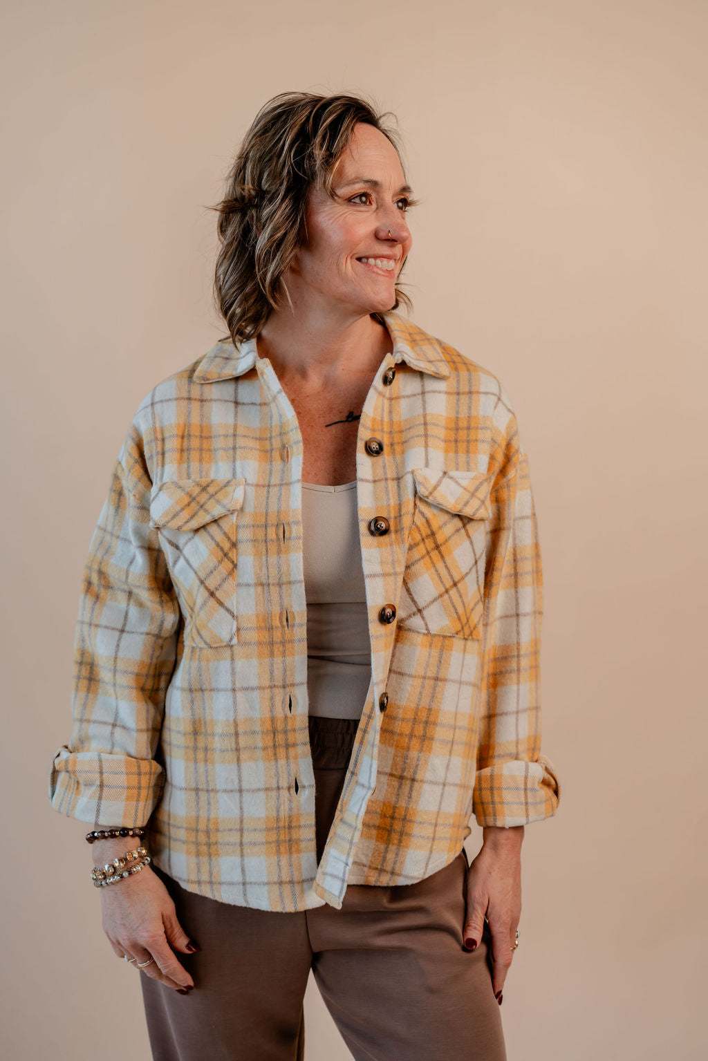 Layer up with our Collared Plaid Shacket—the perfect hybrid that can't decide between shirt and jacket, and honestly, we're here for it. Featuring a classic plaid pattern and structured collar, this versatile piece transitions seamlessly from casual coffee runs to weekend adventures. Throw it over your favorite tee, dress it up with a button-down, or wear it solo when the weather's just right. It's the wardrobe MVP that works harder than you do.