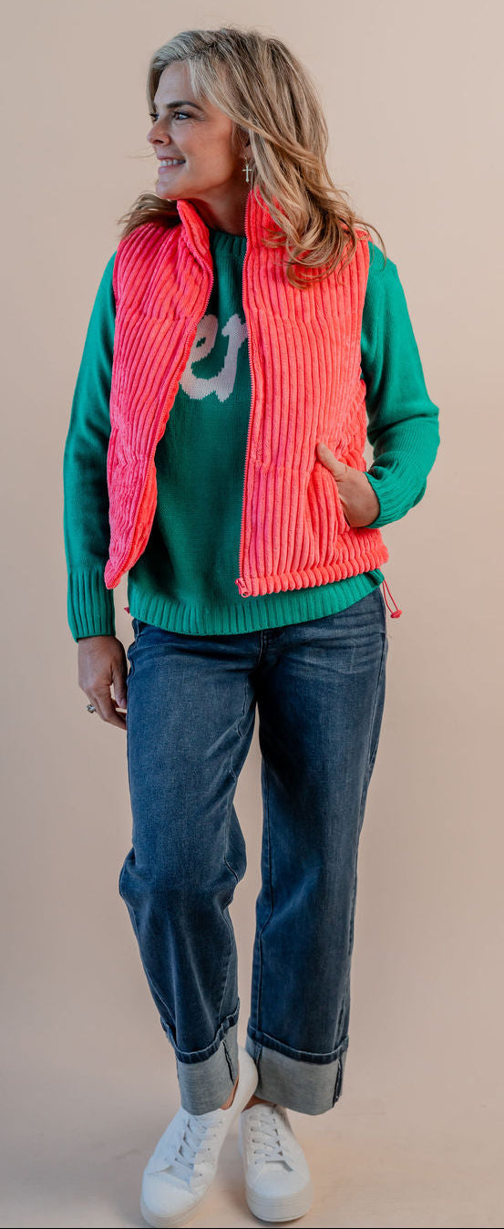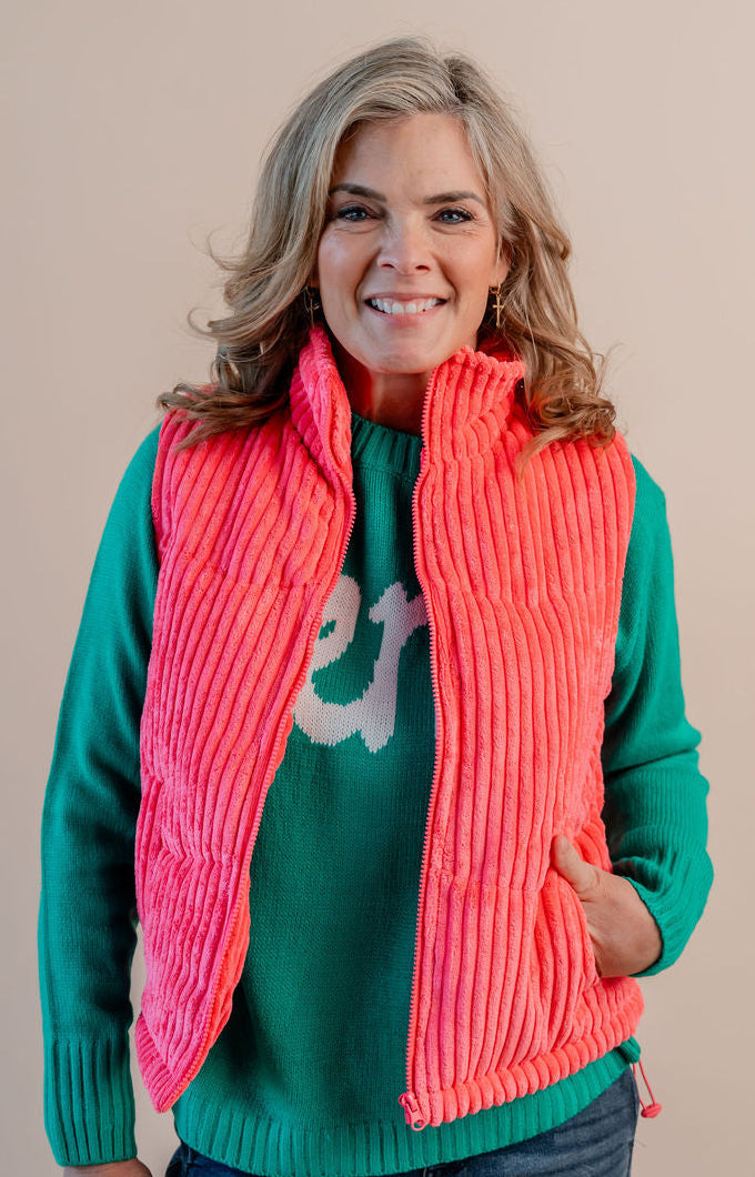 Add a dash of texture and charm to your outfit with this playful corduroy vest. Soft yet structured, it’s perfect for layering over tees or button-ups, bringing cozy warmth and vintage vibes to your look. Ready to make every day feel a little more fun and stylish? This vest’s got you covered!