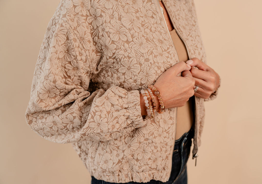 Add a splash of fun to your wardrobe with the Jacket Bomber Flower 3D. Its vibrant, three-dimensional floral design brings lively texture and charm, making every outfit pop. Lightweight and comfortable, this bomber jacket is perfect for adding a playful twist to any casual look.
