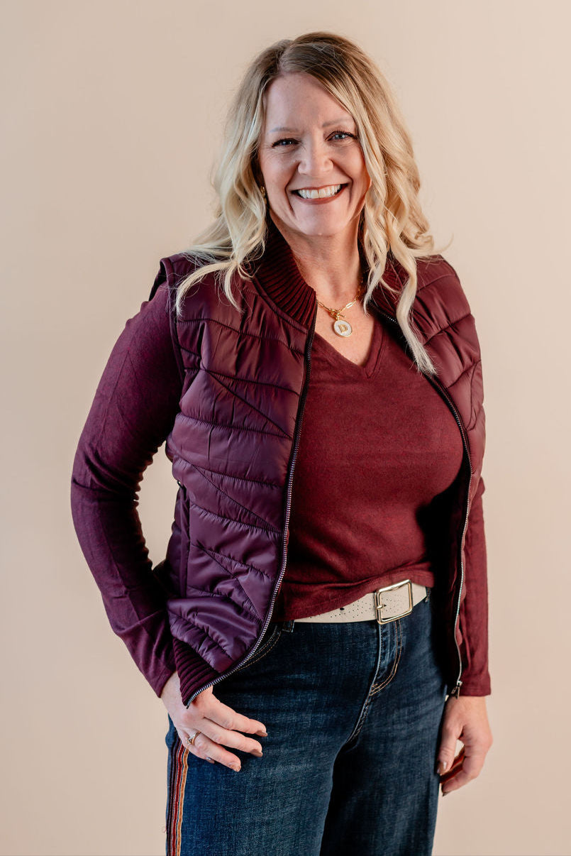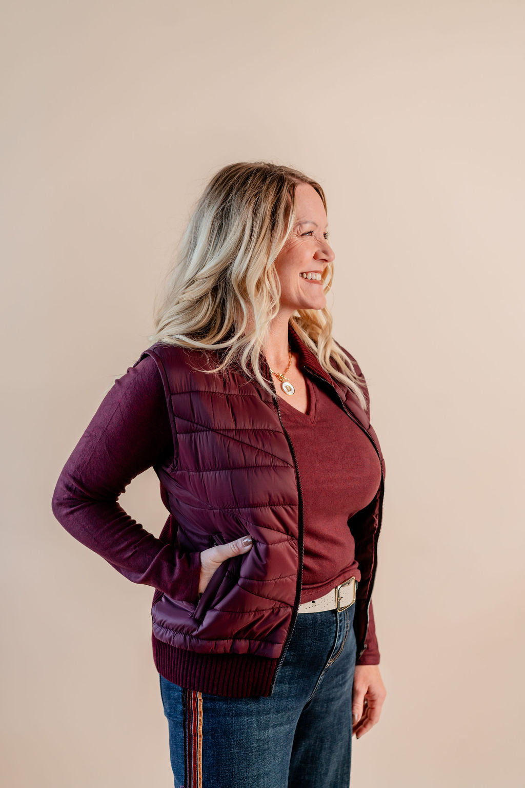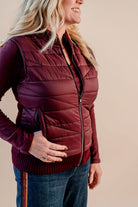 Layer up with a playful twist in this Sleeveless Quilted Front Full Zip Sweater Vest. Its quilted front adds cozy texture, while the full zip lets you mix and match your look with ease. Perfect for keeping comfy without the bulk, it’s your new go-to for an effortlessly cool vibe.