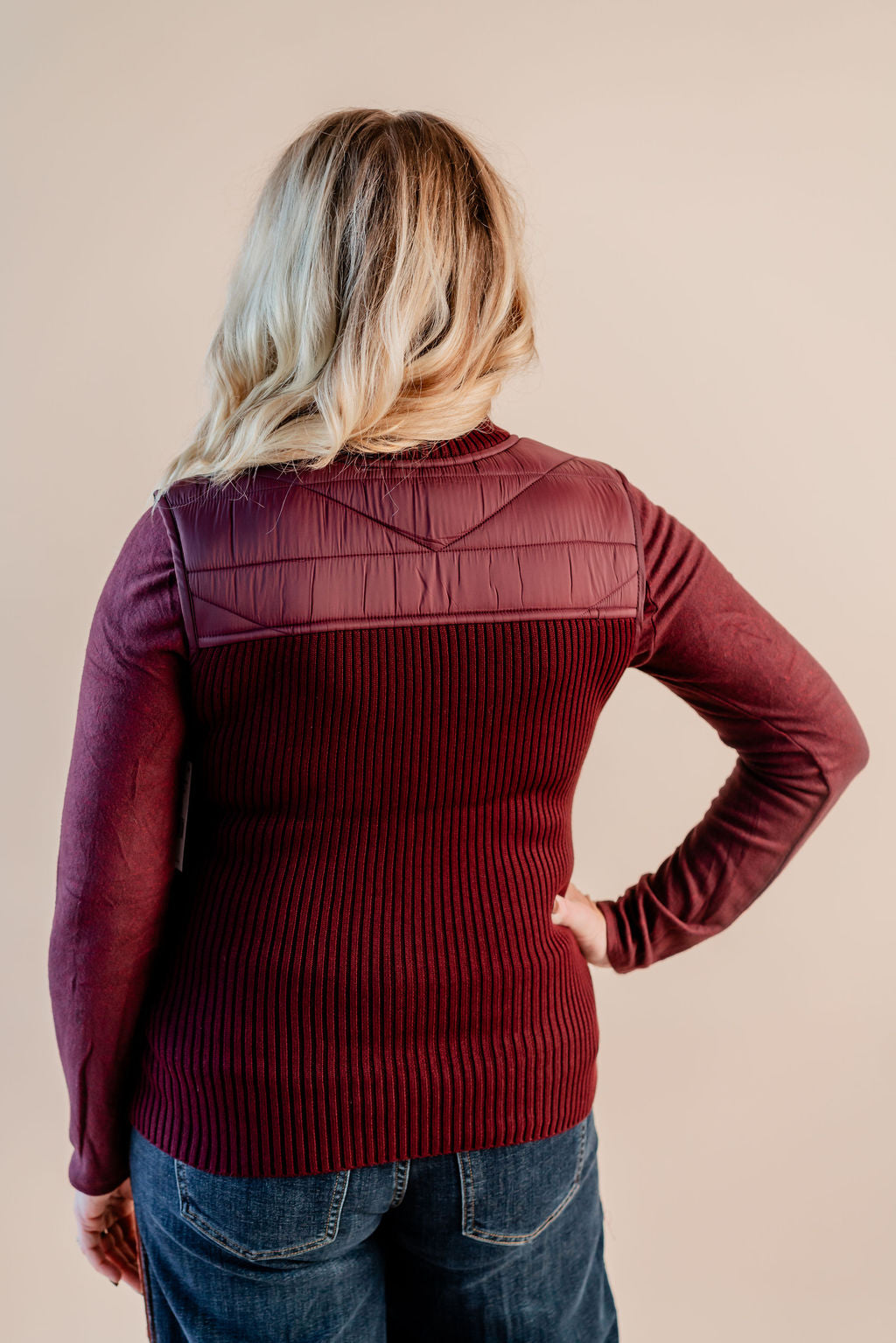 Sleeveless Quilted Front Full Zip Sweater Vest