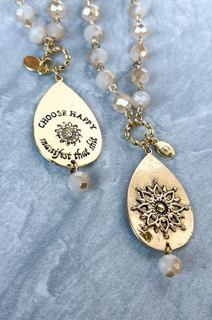 Brighten your day with the Gold Choose Happy Necklace! This charming accessory adds a touch of sunshine to any outfit, reminding you to embrace joy wherever you go. Its gleaming gold finish catches the light perfectly, making it a playful and uplifting addition to your jewelry collection. Wear a little happiness around your neck and let your smile shine just as brightly!