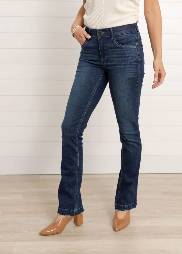 Meet your new denim bestie: the Mac and Me Indigo Bitty Boot. With just the right amount of bootcut sass, these dark wash beauties lengthen your legs and love your curves in all the right places. Featuring our famous Mac and Me technology that holds you in and lifts you up, you’ll feel as amazing as you look—promise. Oh, and don’t forget the tag inside that sweetly reminds you: You Are So Loved. 💙