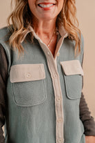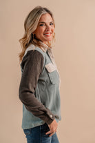 Effortlessly stylish and cozy, this textured waffle button down is perfect for layering or wearing on its own. Featuring a chic mix of muted sage, taupe, and cream colorblocking with contrast front pockets and sleeves, it brings a modern twist to a timeless silhouette. Designed with a relaxed fit, soft fabric, and classic button-front closure, it’s a versatile piece you’ll reach for all season long. Pair it with your favorite denim for an easy, put-together look.
