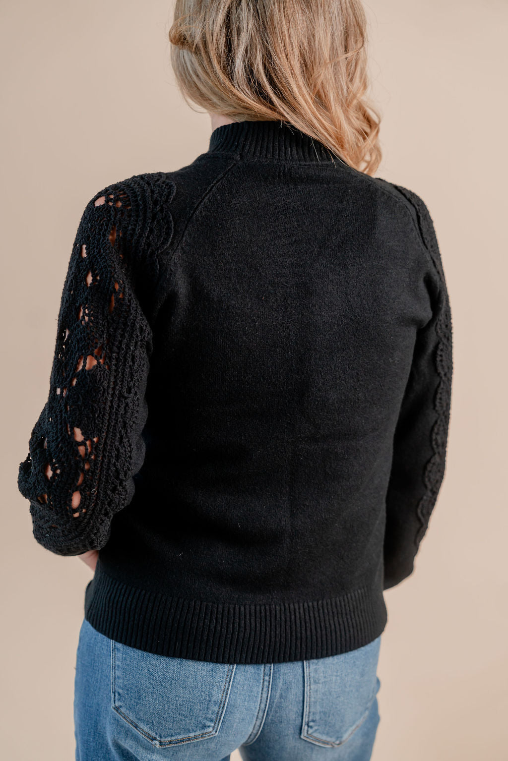 Cozy meets quirky with this Crochet Sleeve Mock Neck Sweater! The playful crochet sleeves add a touch of fun to the snug mock neck design, making it perfect for chilly days when you want to stand out. Stay warm, comfy, and stylish all at once—this sweater is ready to become your new favorite twist on classic cool.
