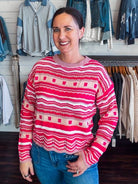 Cozy up in stripes with this charming crochet sweater. Hand-crafted texture meets modern color blocking for a look that's equal parts relaxed and refined. Perfect for layering or wearing solo, it brings effortless warmth and personality to your everyday rotation. A timeless piece that feels fresh, season after season.