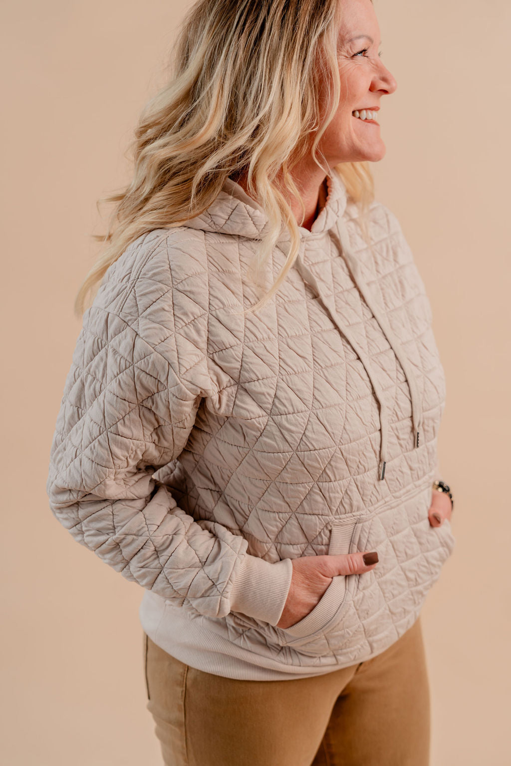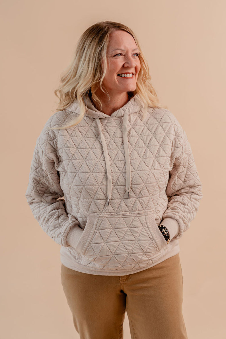 Cozy meets cute in this Drawstring Neck Quilted Long Sleeve Pullover! The quilted fabric keeps you snug while the playful drawstring neck adds a fun, adjustable touch. Perfect for chilly days when you want to stay warm without sacrificing style. Easy to wear, hard not to love!