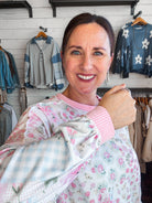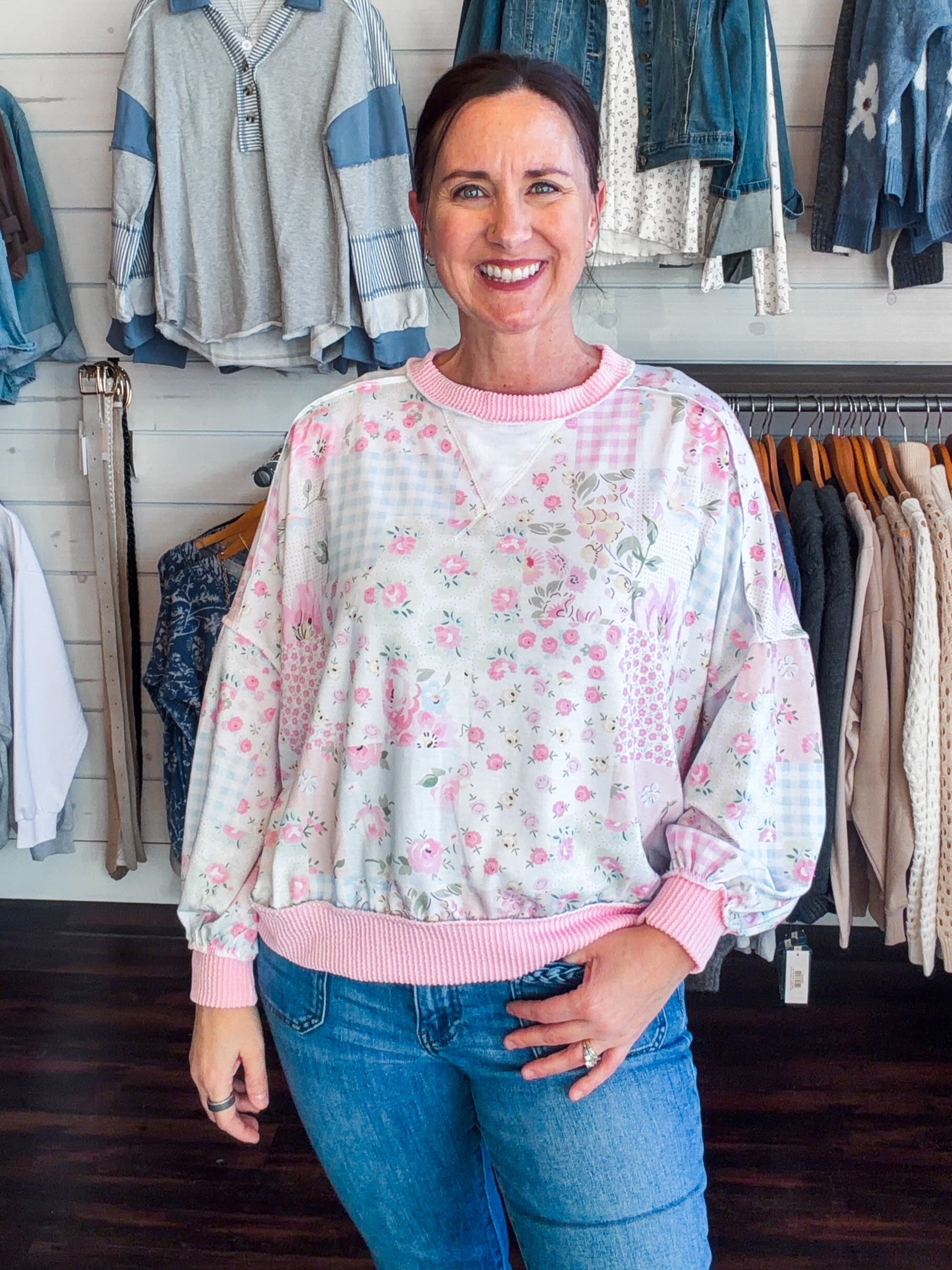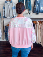 Mix geometric flair with cozy layering in this oversized patchwork top. Featuring a bold triangle design across contrasting fabric panels, it's the kind of statement piece that works solo or layered under your favorite jacket. Long sleeves and a relaxed fit make it endlessly versatile—dress it up with tailored trousers or keep it casual with your go-to denim. A modern take on patchwork that feels fresh, not retro.