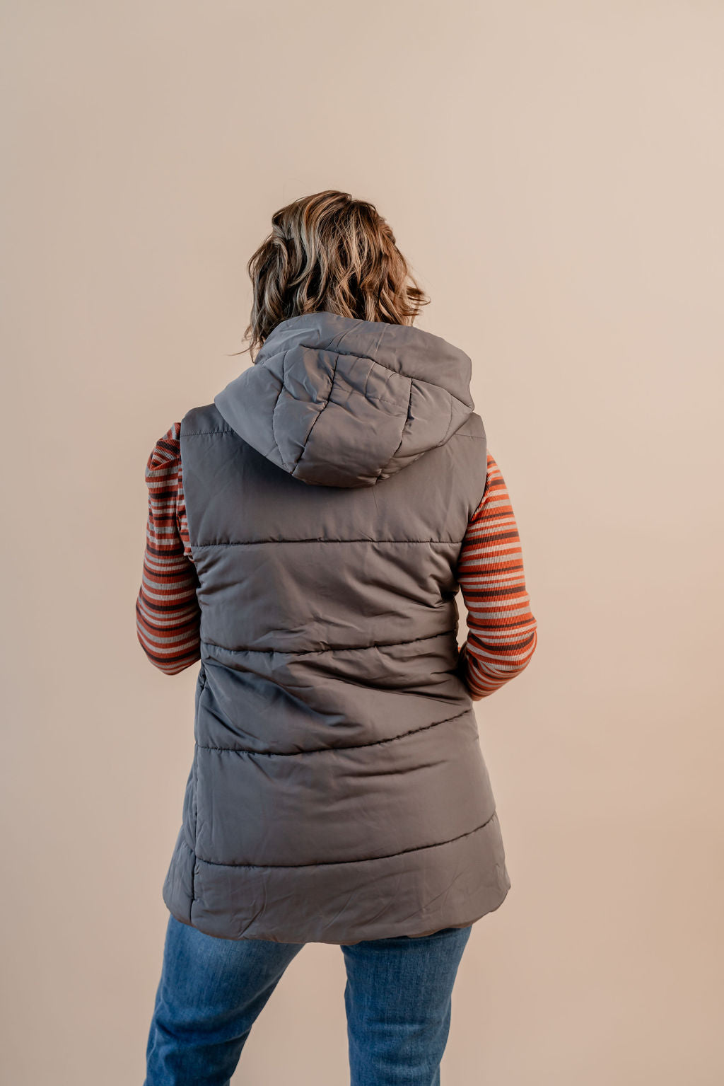 Stay cozy and stylish with this Hooded Puffer Vest featuring a handy zip front. Perfect for layering, it keeps you warm without weighing you down, while the hood adds extra charm and protection on breezy days. Whether you're headed out for an adventure or just running errands, this vest adds a fun, sporty touch to any outfit.