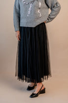 Twirl into the season with this charming midi skirt featuring delicate ruffles that add movement and personality to every step. The flowing silhouette hits at the perfect length for versatile styling—dress it up with heels for a night out or keep it casual with sneakers and a tee. Those playful ruffles catch the light beautifully, making this skirt a standout piece that works as hard as you do. Perfect for anyone who loves a little extra flair.