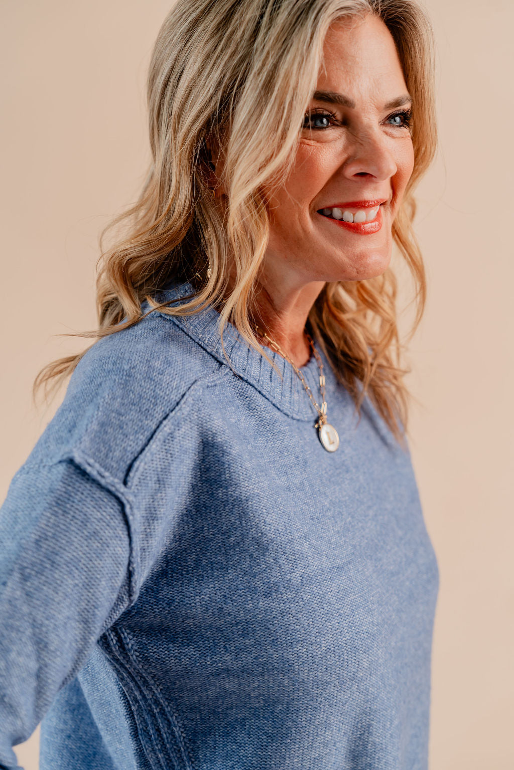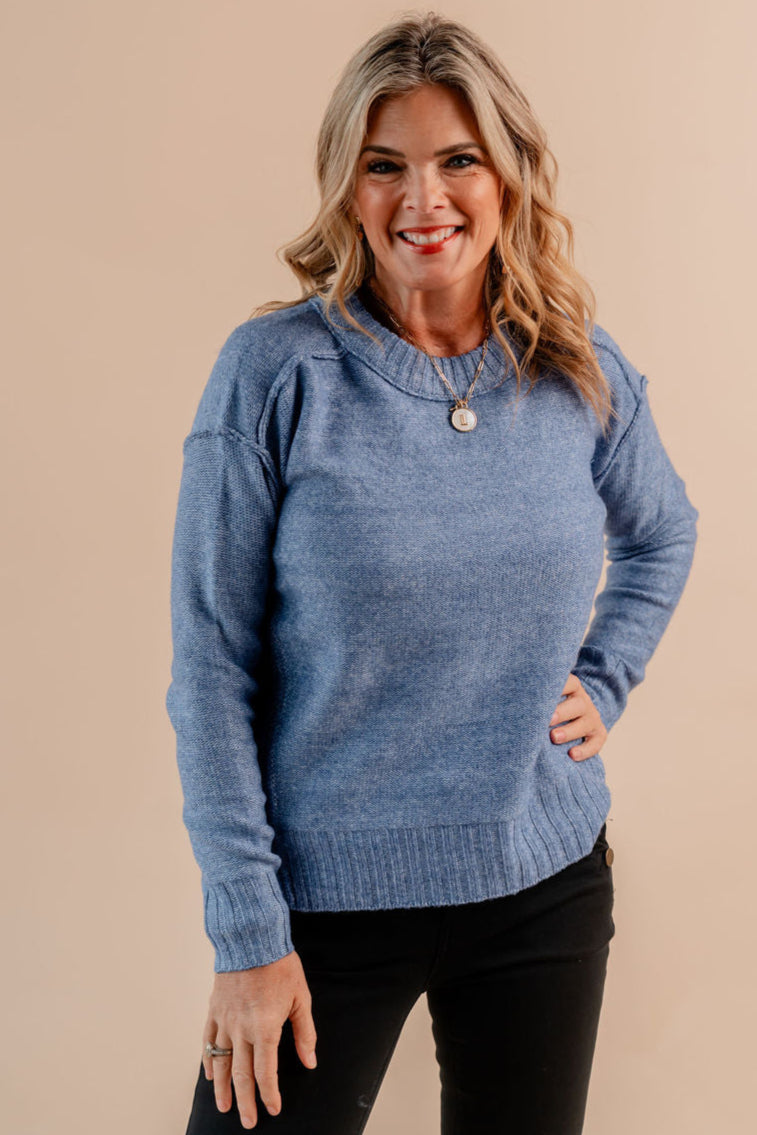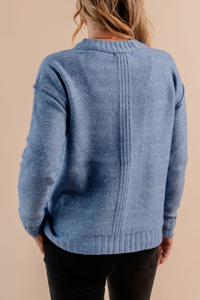 Outside Seam Detailed Long Sleeve Crew Neck Pullover Sweater