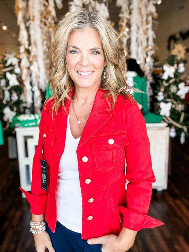 Elevate your everyday style with this chic peplum jacket featuring clever tab detailing that adds movement and personality to any outfit. The structured silhouette flatters your frame while the playful peplum hem brings a modern twist to a classic layer. Perfect for dressing up casual looks or adding polish to your weekend wardrobe. Versatile, fun, and endlessly wearable—this jacket is about to become your go-to piece.
