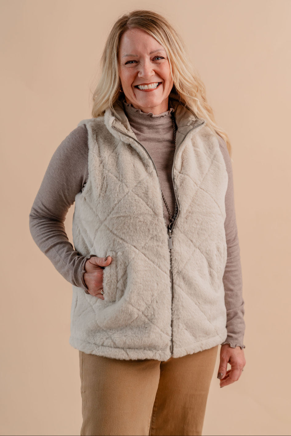 Switch up your style in a flash with this Reversible Nylon Faux Fur Vest! Cozy and chic, it gives you two fabulous looks in one – luxe faux fur on one side and sleek nylon on the other. Perfect for layering on chilly days or adding a fun twist to your outfit. Soft, warm, and ready to play dress-up whenever you are!