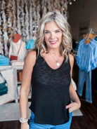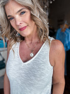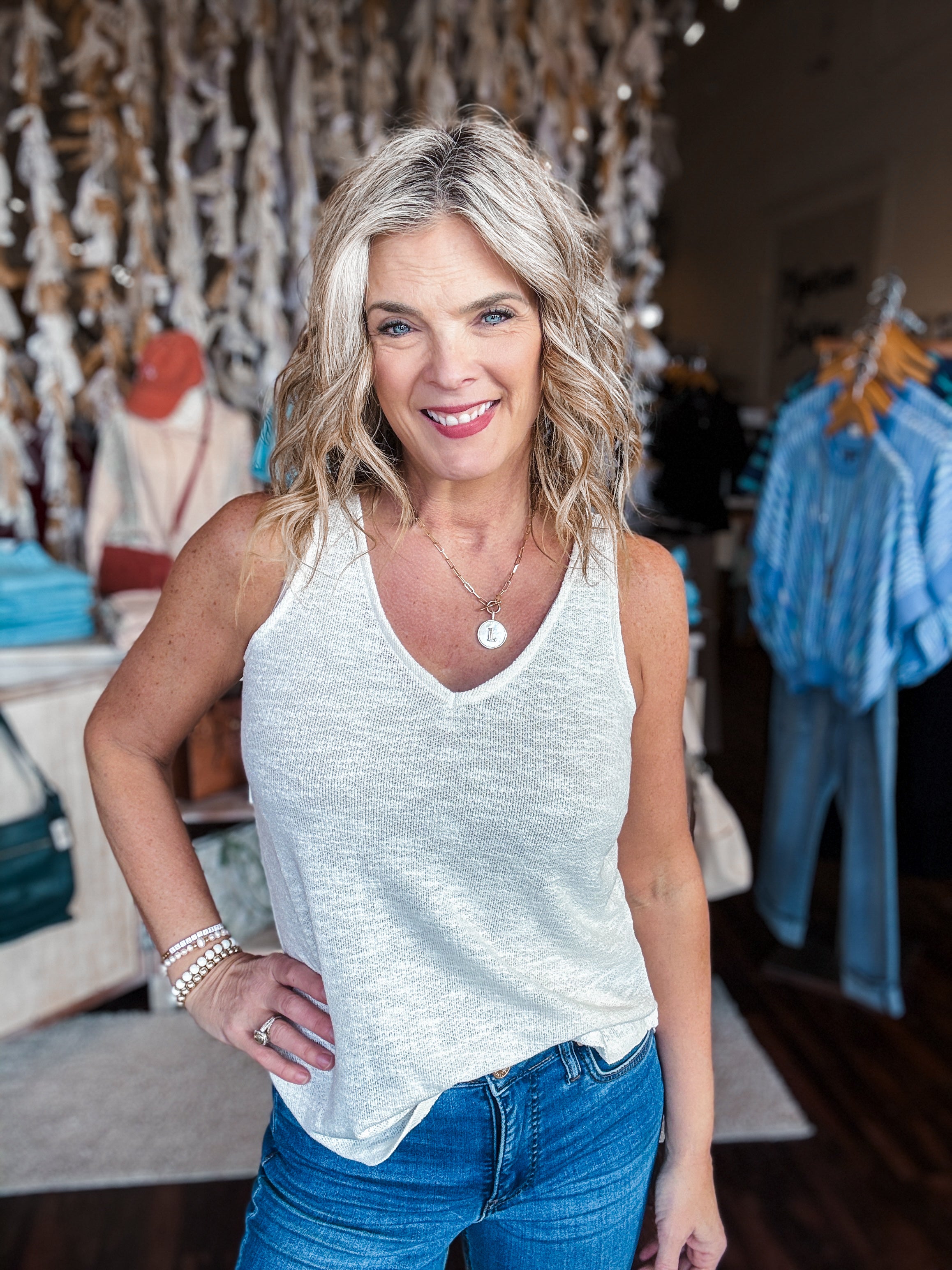 Effortless layering meets laid-back luxury with this V-neck cami. The slub hacci fabric drapes beautifully while keeping things breathable and comfortable—perfect for throwing over your favorite bra or wearing solo. Soft texture, flattering neckline, and just the right amount of casual cool. Your new go-to piece for spring wardrobes and beyond.