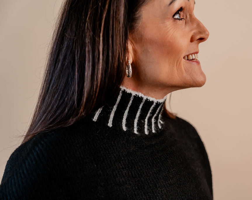Wrap yourself in cozy charm with this Turtle Neck Sweater featuring fun stitching details. The snug turtleneck keeps the chill at bay, while the unique stitching adds a playful twist to your classic knit. Perfect for layering or wearing solo to brighten up any cool day