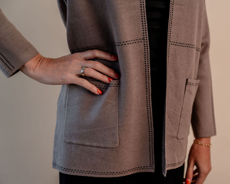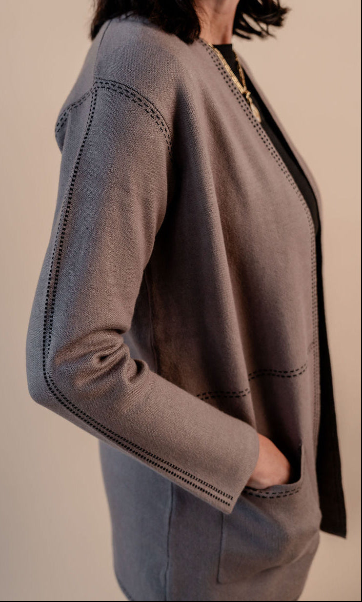Stitch Trimmed Long Sleeve Cardigan