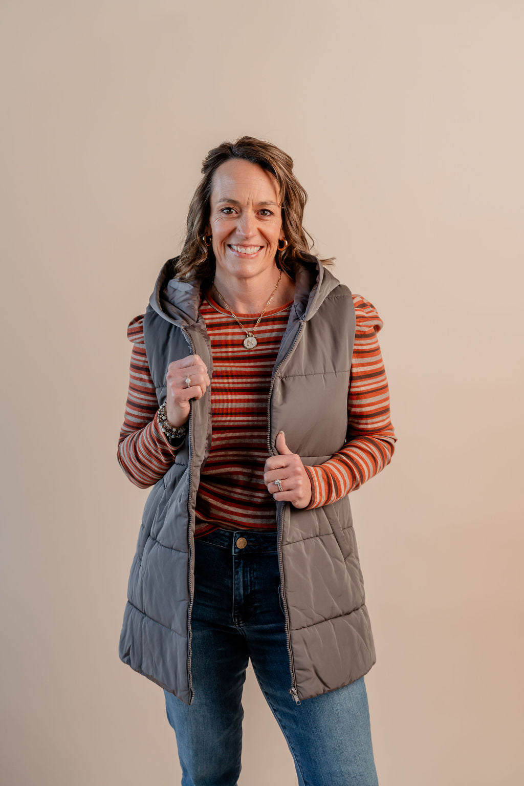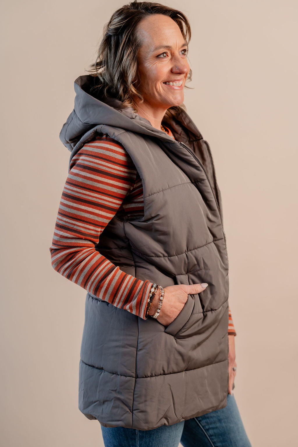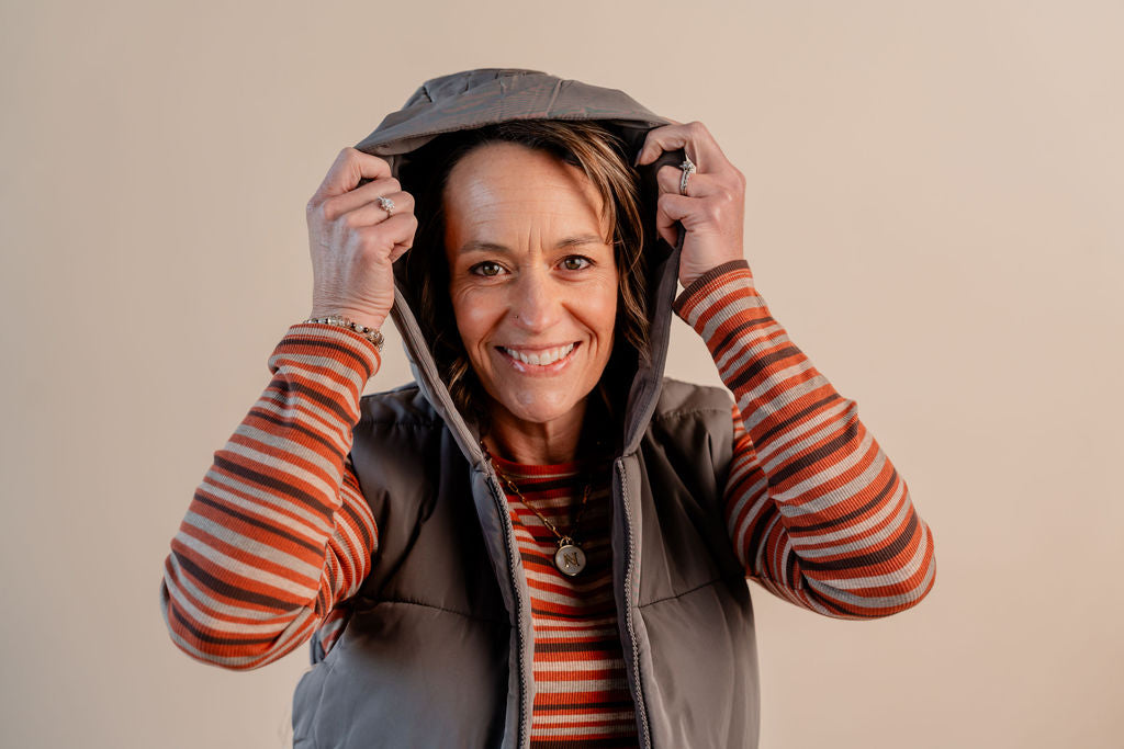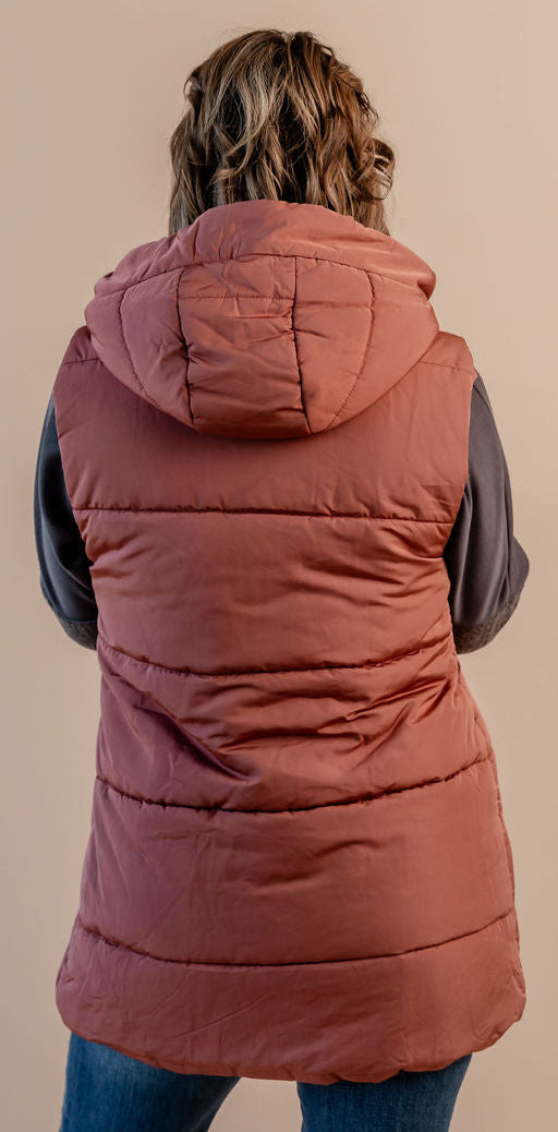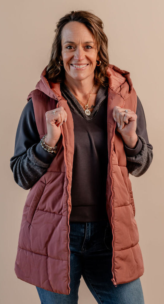 Hooded Puffer Vest W/ Zip Front
