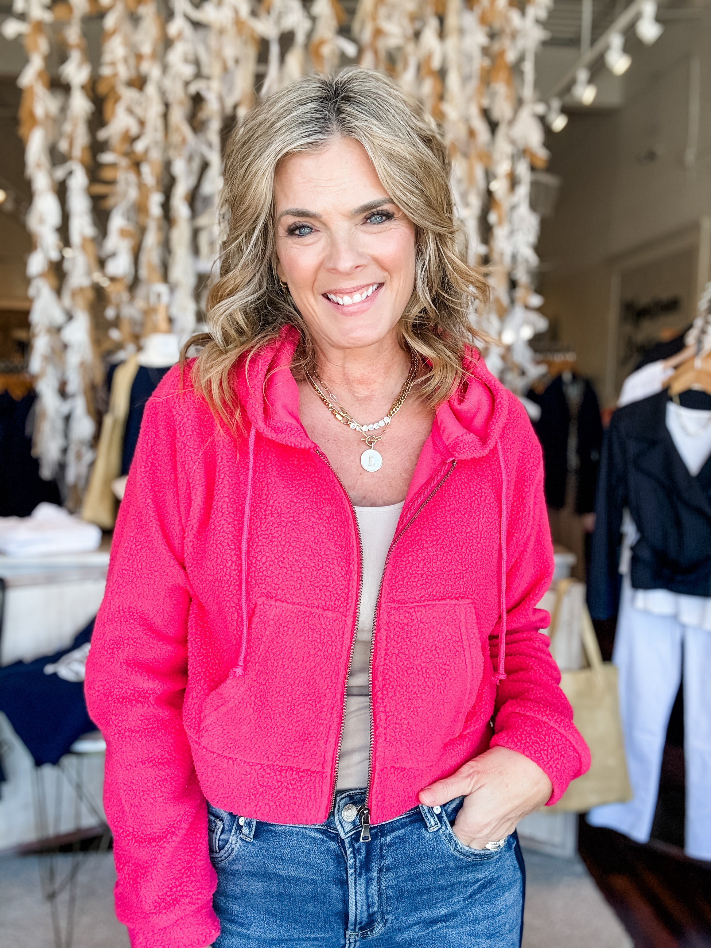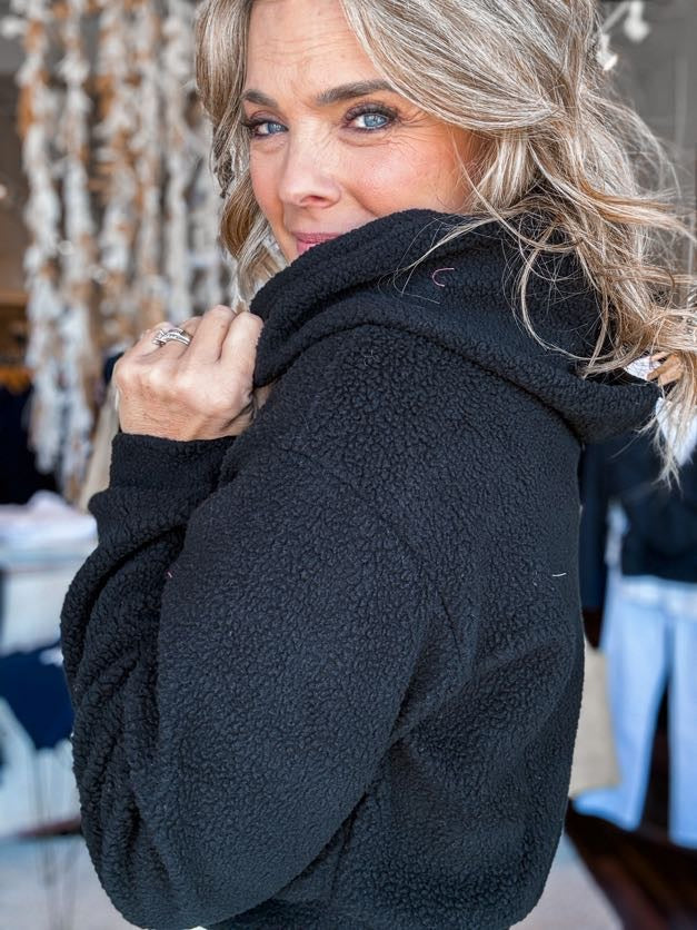 Sherpa Cropped Zip Up Hoodie