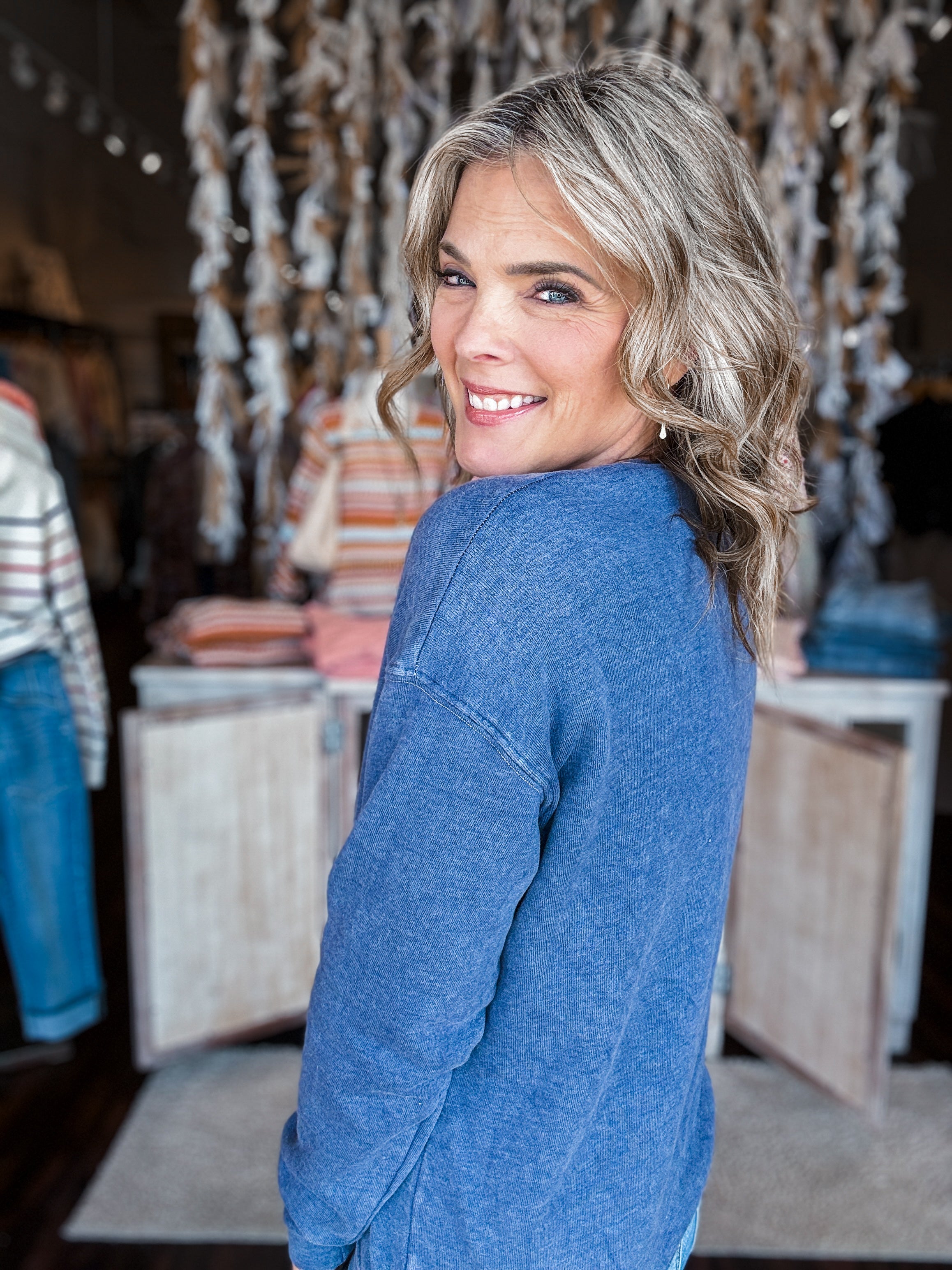 French Terry V-neckline Oversized Sweatshirt