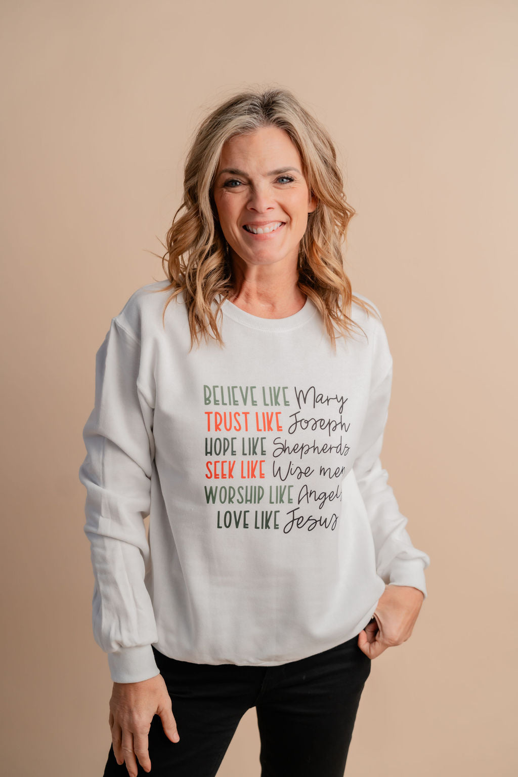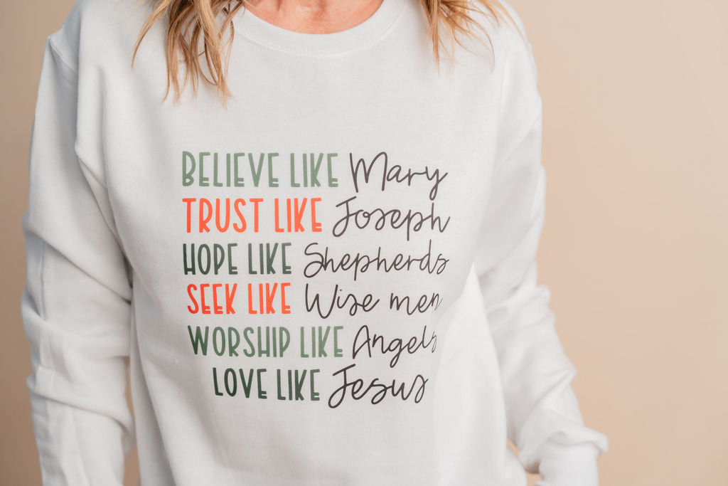 Get cozy and inspired with the Believe Like Mary Crewneck! This soft, comfy sweatshirt reminds you to embrace faith and positivity every day. Perfect for lounging or casual outings, it’s a playful way to show off your uplifting spirit while staying warm and stylish.