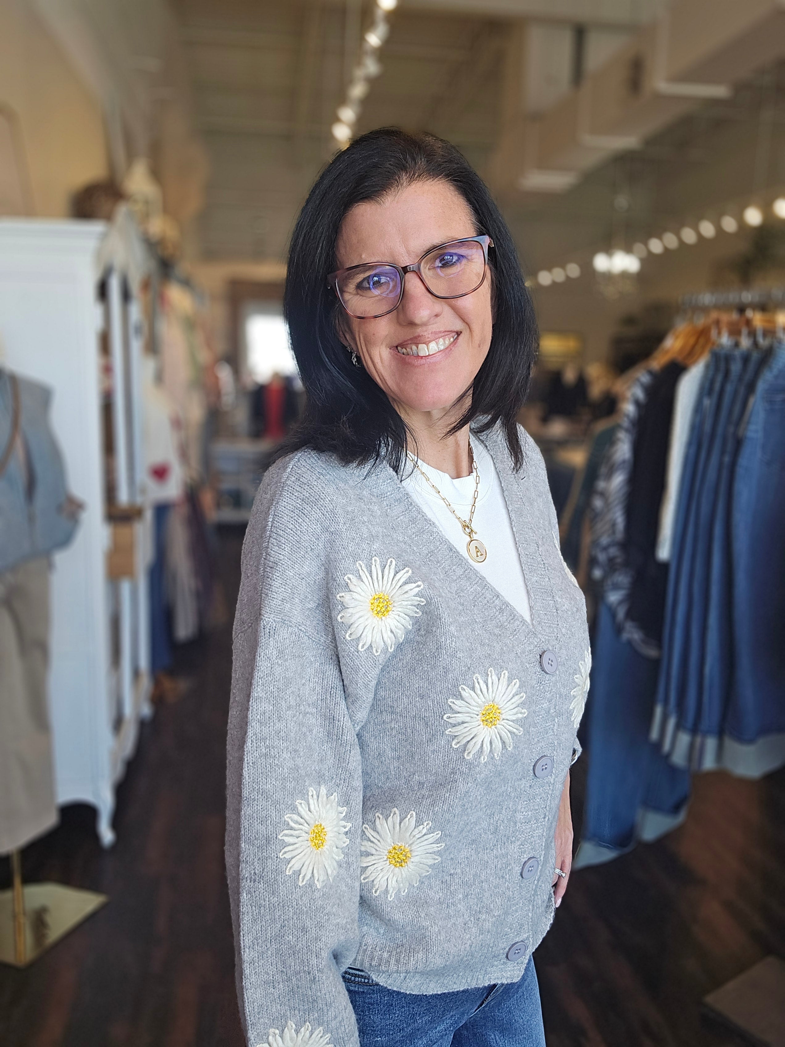 Bloom into style with this charming button-down cardigan, where delicate floral appliqués dance across a cozy knit base. Perfect for layering over your favorite tee or dress, it brings a whimsical touch to everyday outfits. The classic button closure makes it easy to slip on and off, while the soft sweater fabric keeps you comfortable all day long. Whether you're heading to brunch or a casual weekend outing, this piece adds personality and warmth to any wardrobe.