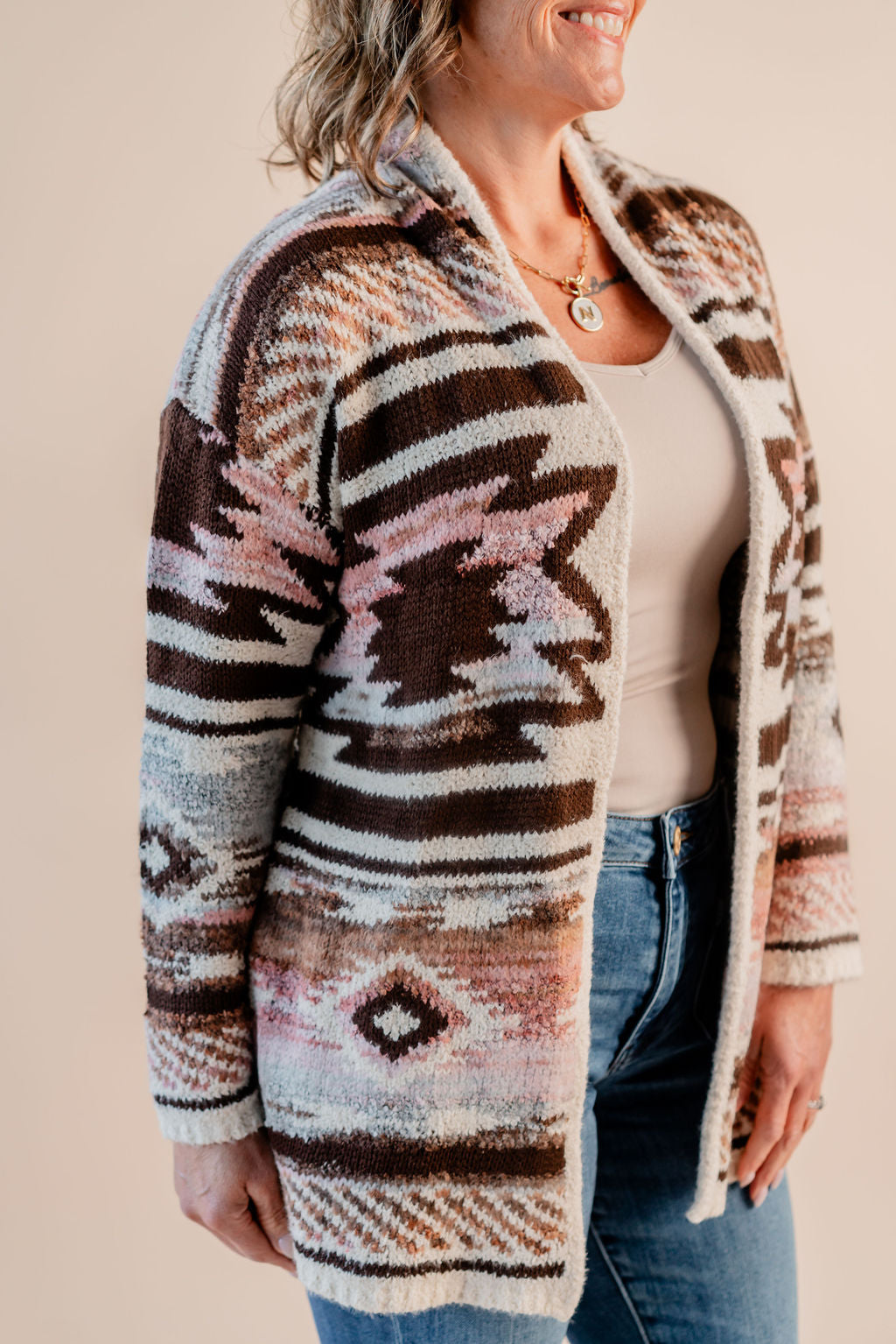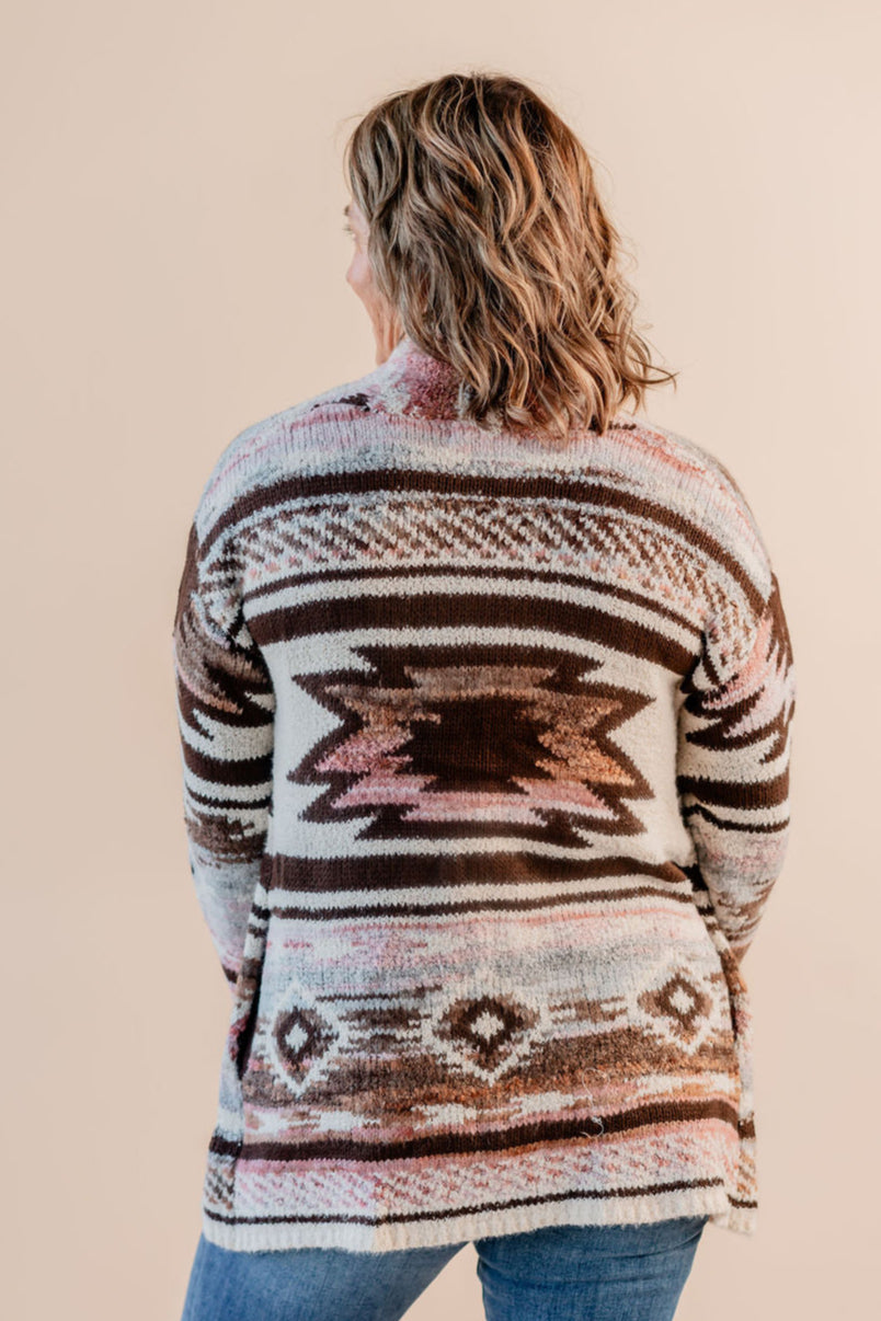 Wrap yourself in cozy charm with this Long Jacquard Cardigan featuring handy patch pockets. Its unique jacquard pattern adds a fun twist to your layering game, while the generous length keeps you snug. Perfect for chilly days when you want to stay warm without sacrificing style. Slip it on and let the playful pattern brighten your look!