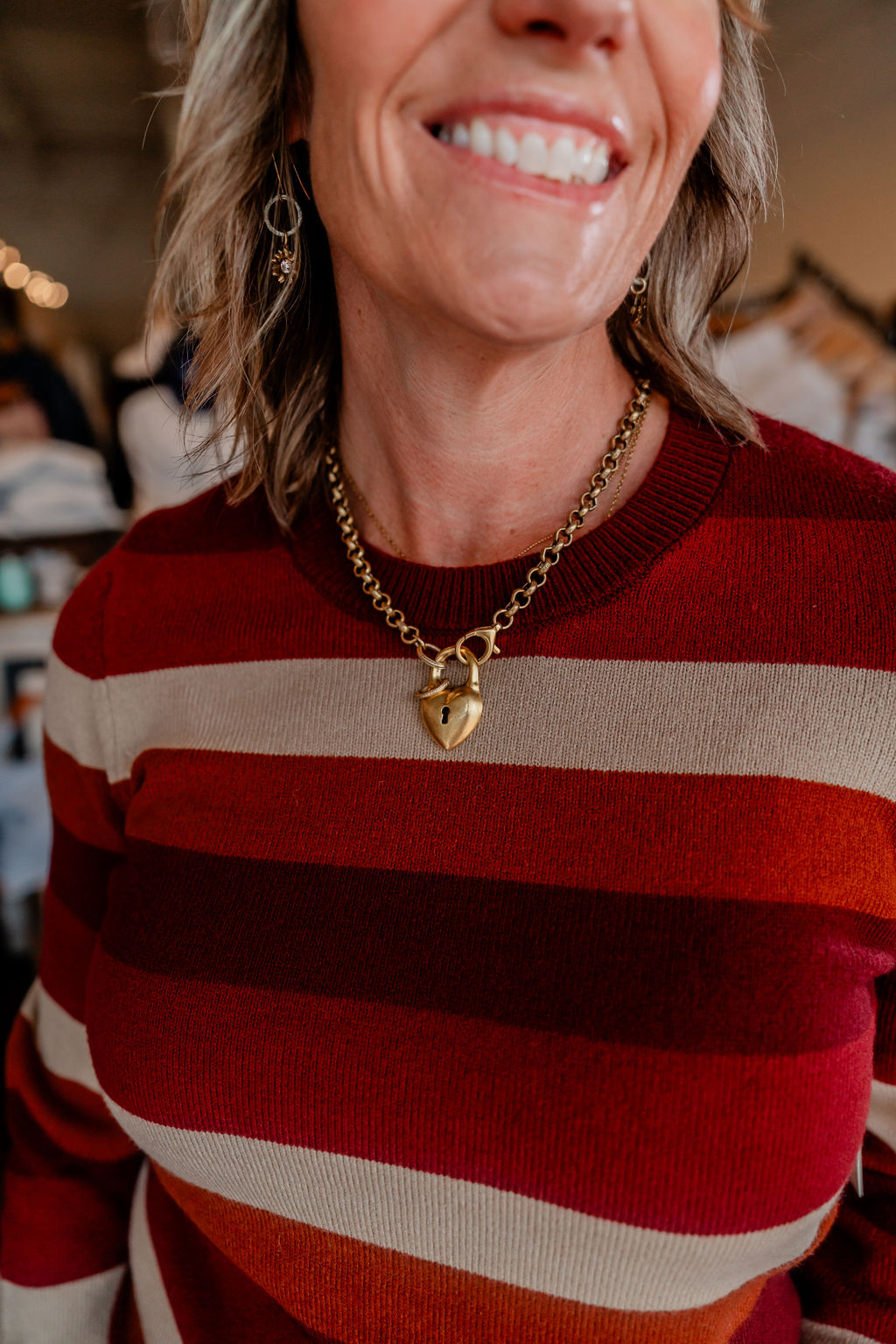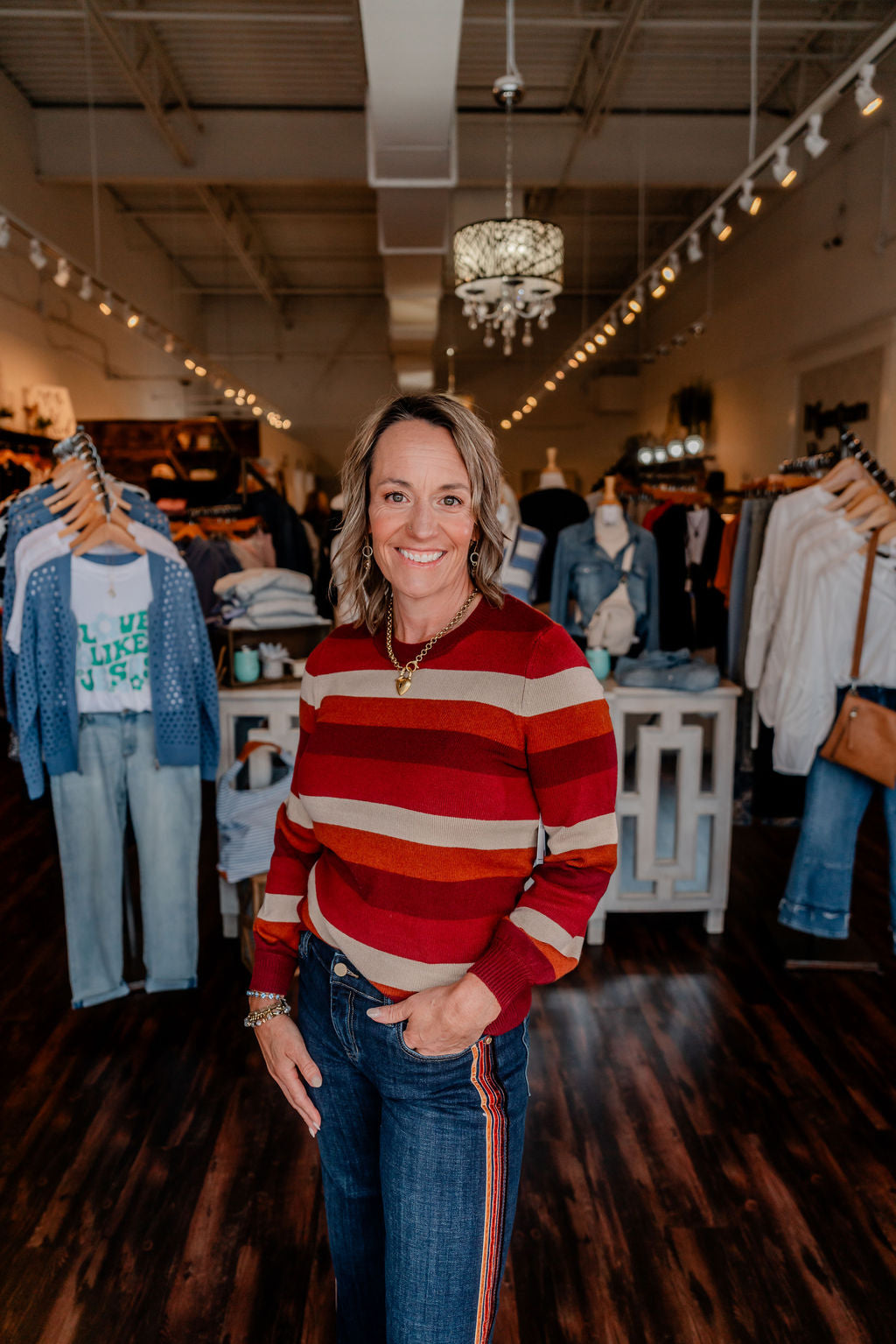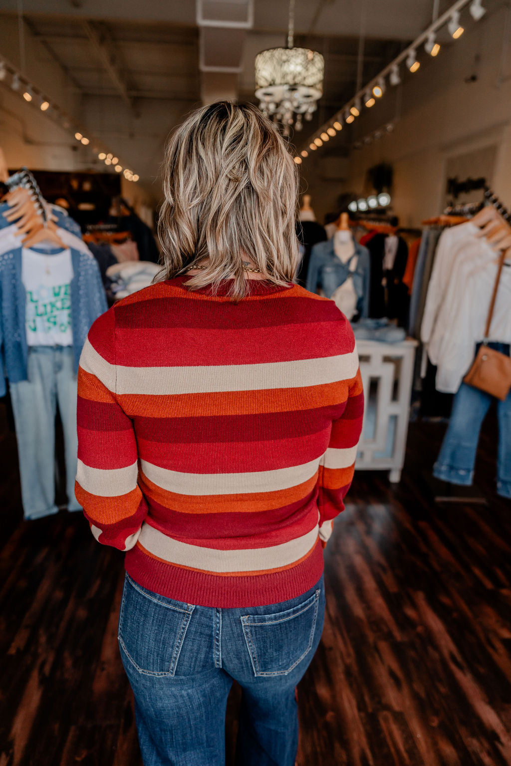 • Color: Wine, rust, camel, and beige stripe