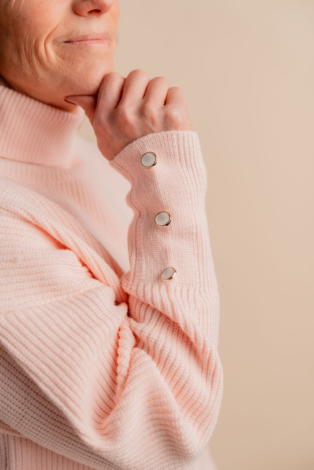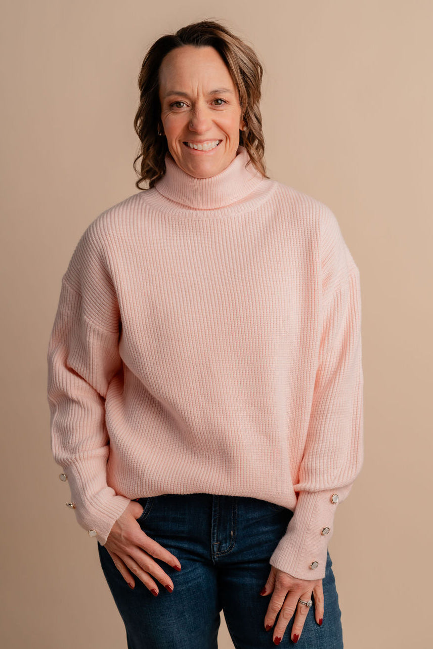 Stay cozy and stylish in this playful turtleneck sweater featuring charming button details along the shoulder. Perfect for layering or wearing solo, its soft knit keeps you warm while the unique buttons add a fun twist to your classic winter look. Effortlessly cute and comfy for all your chilly day adventures!