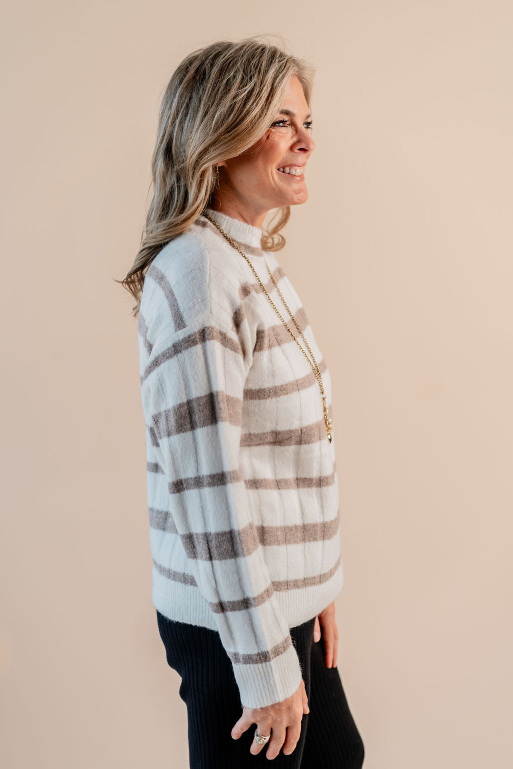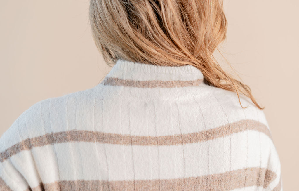 Wide Ribbed Mock Neck Long Sleeve Super Soft Striped Sweaters