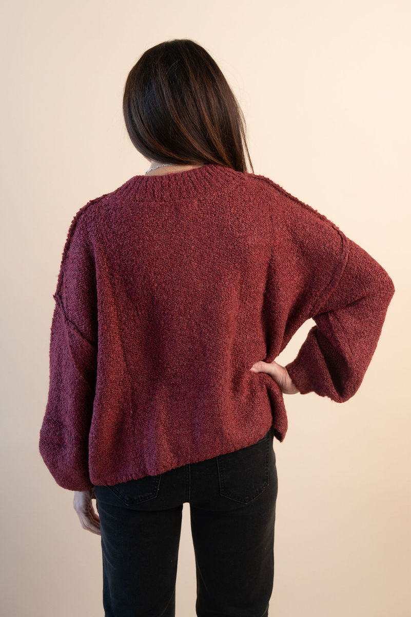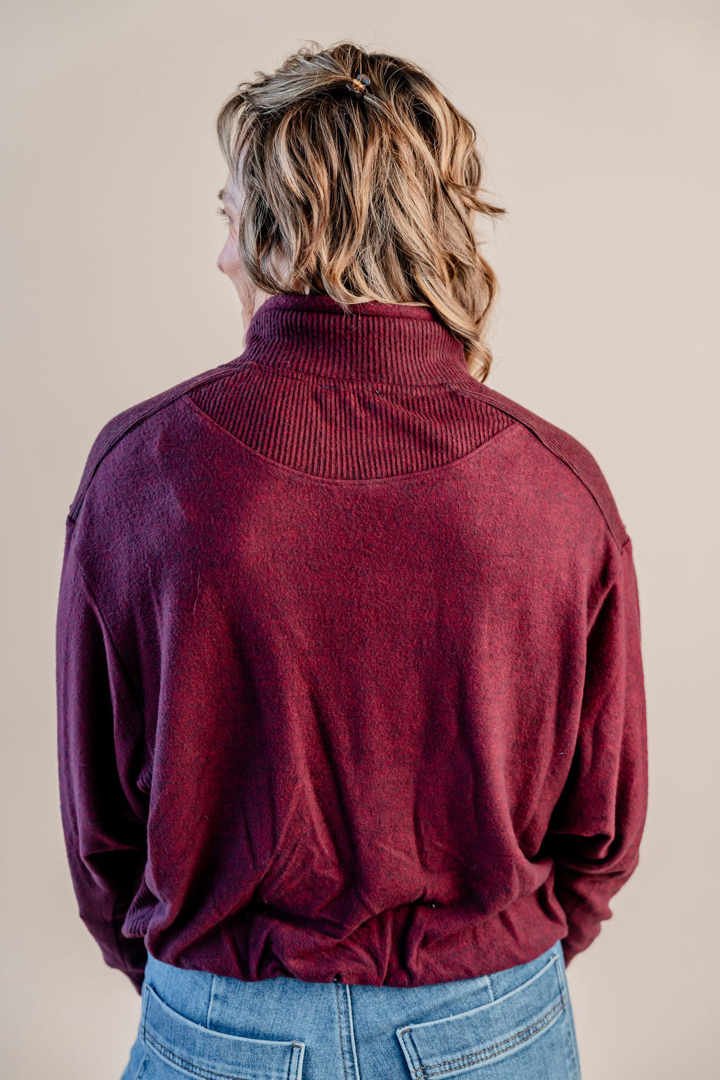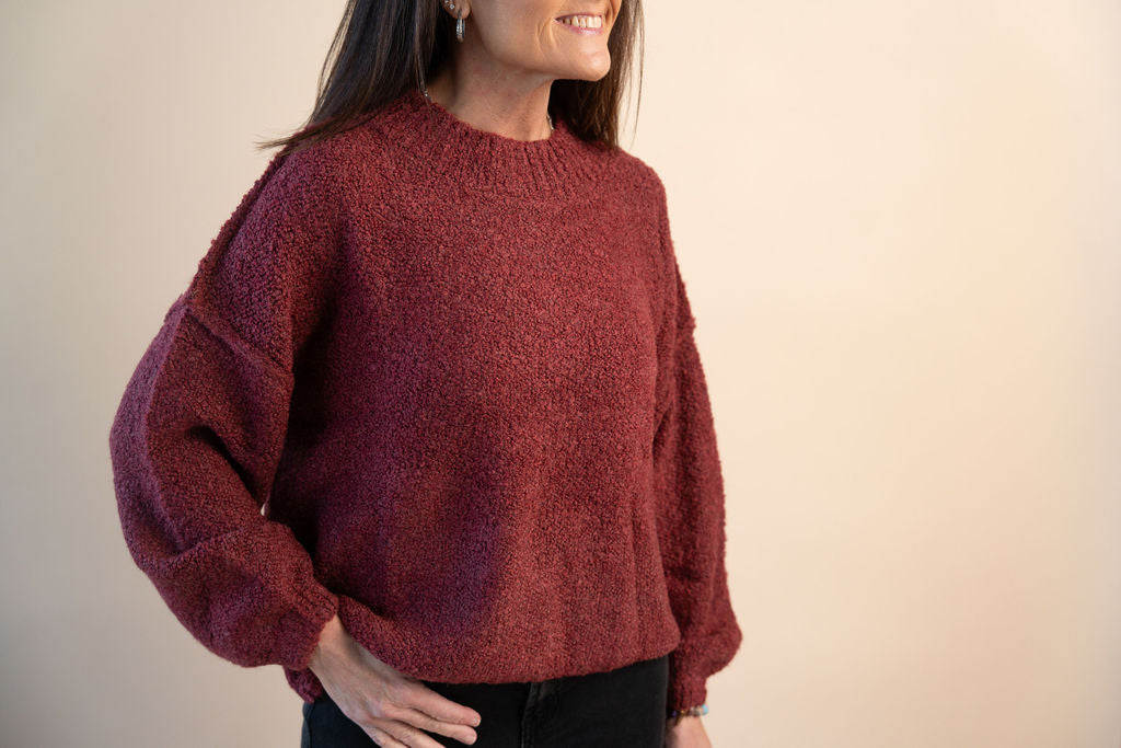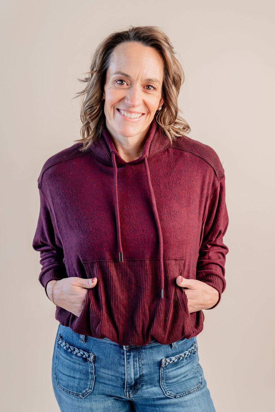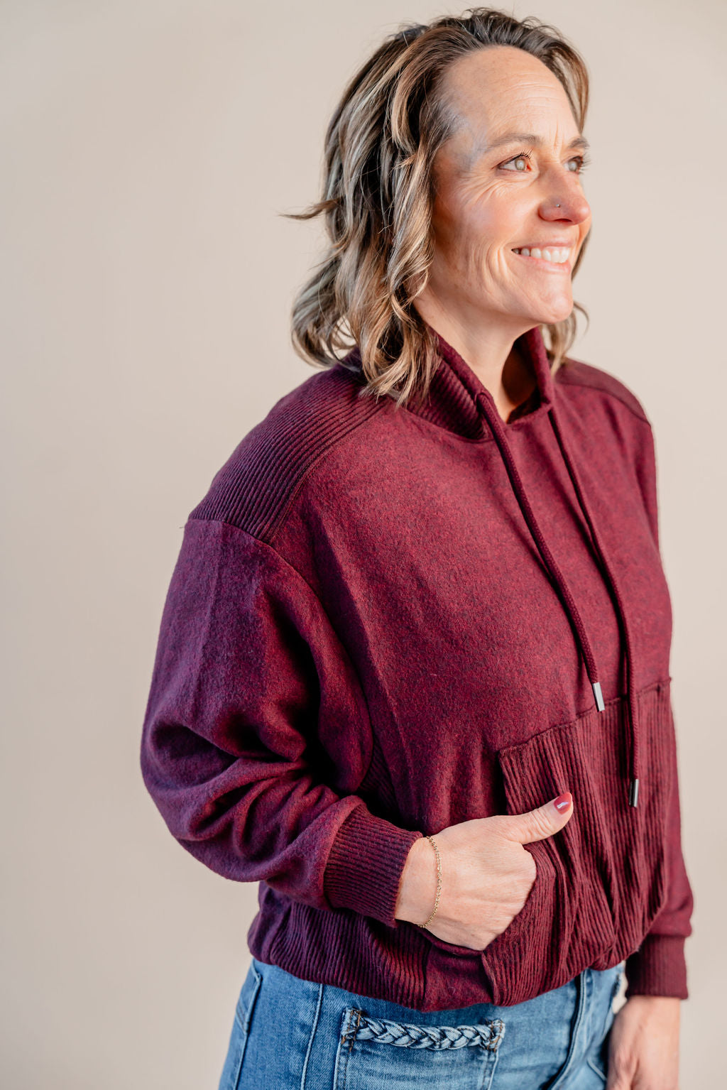 Bubble Hem Knit Top W/ Kangaroo Pocket