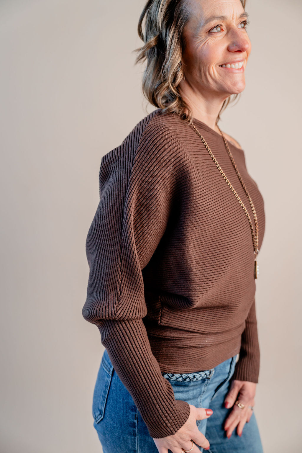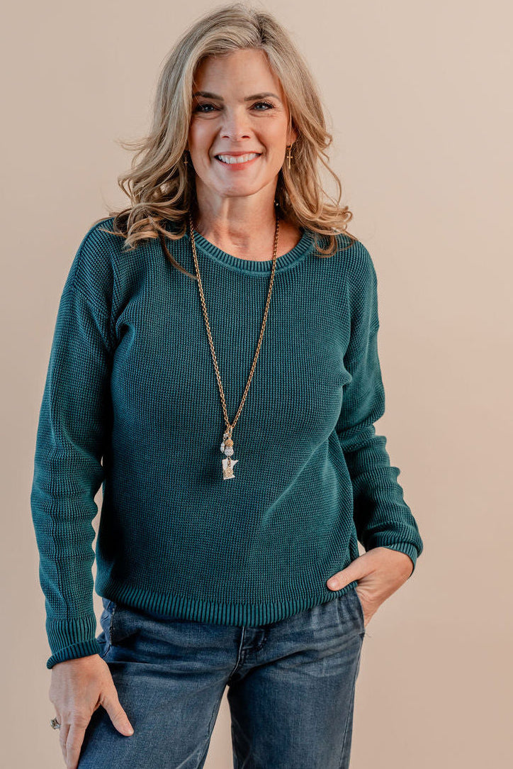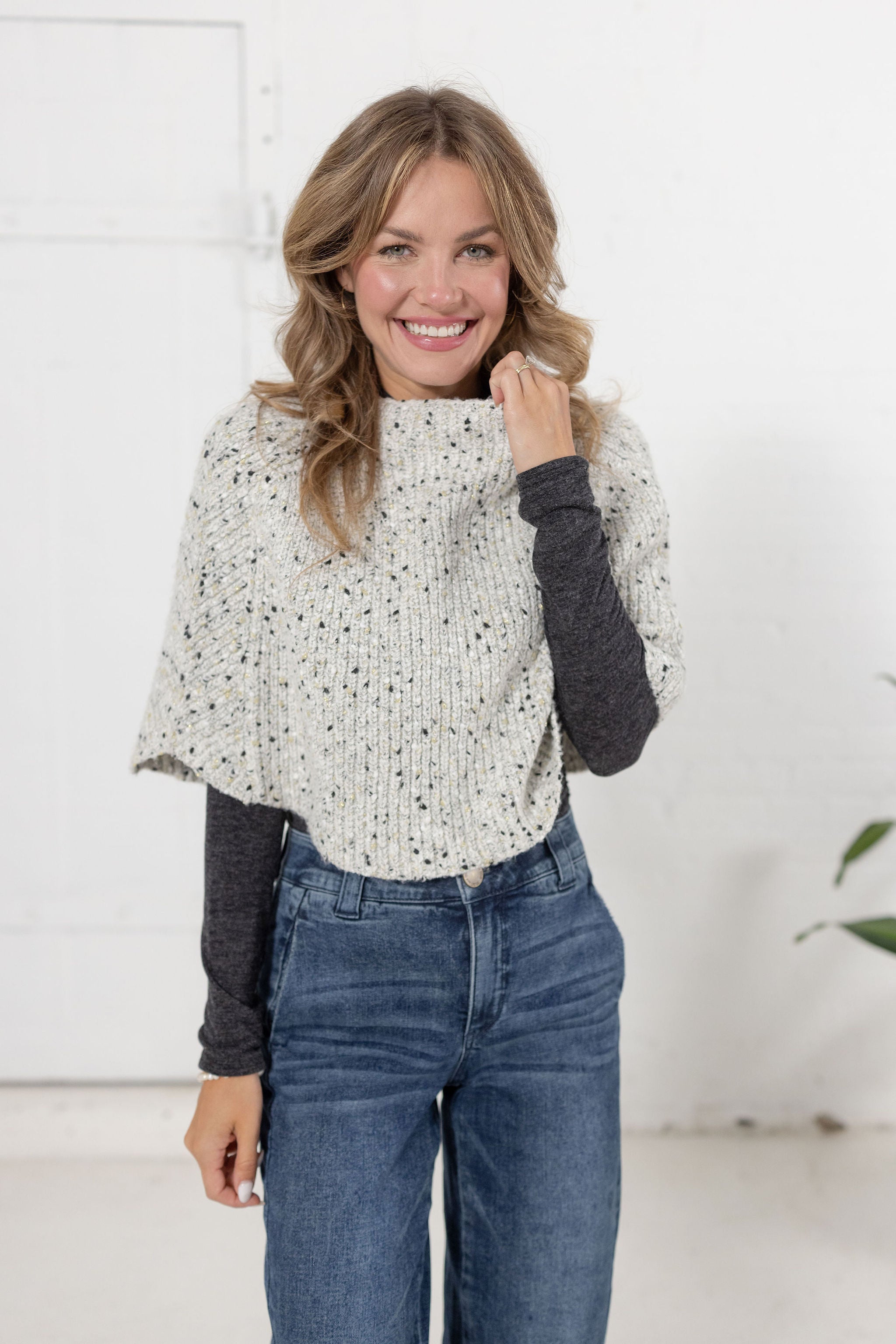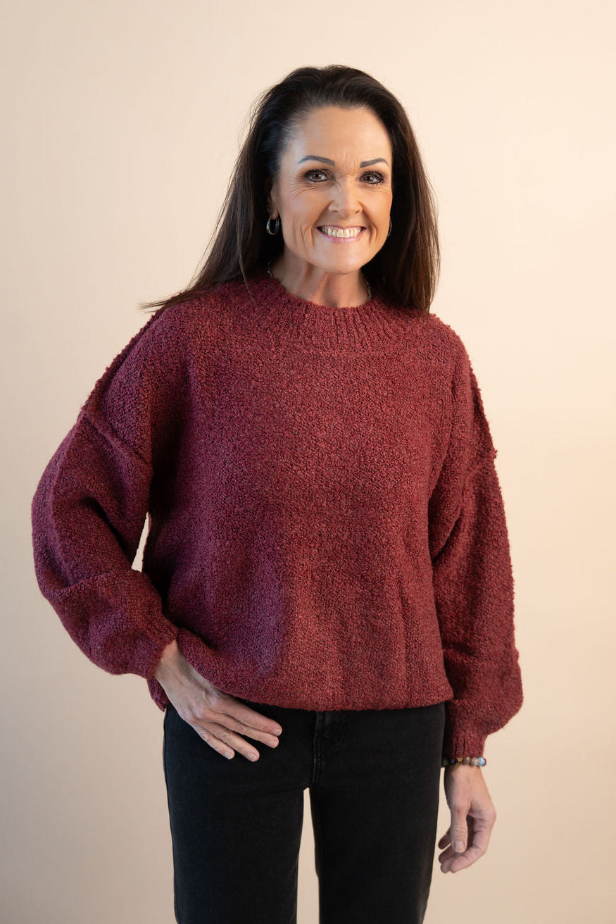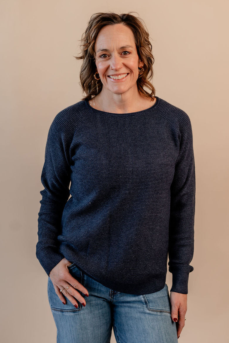 Bubble Hem Knit Top W/ Kangaroo Pocket